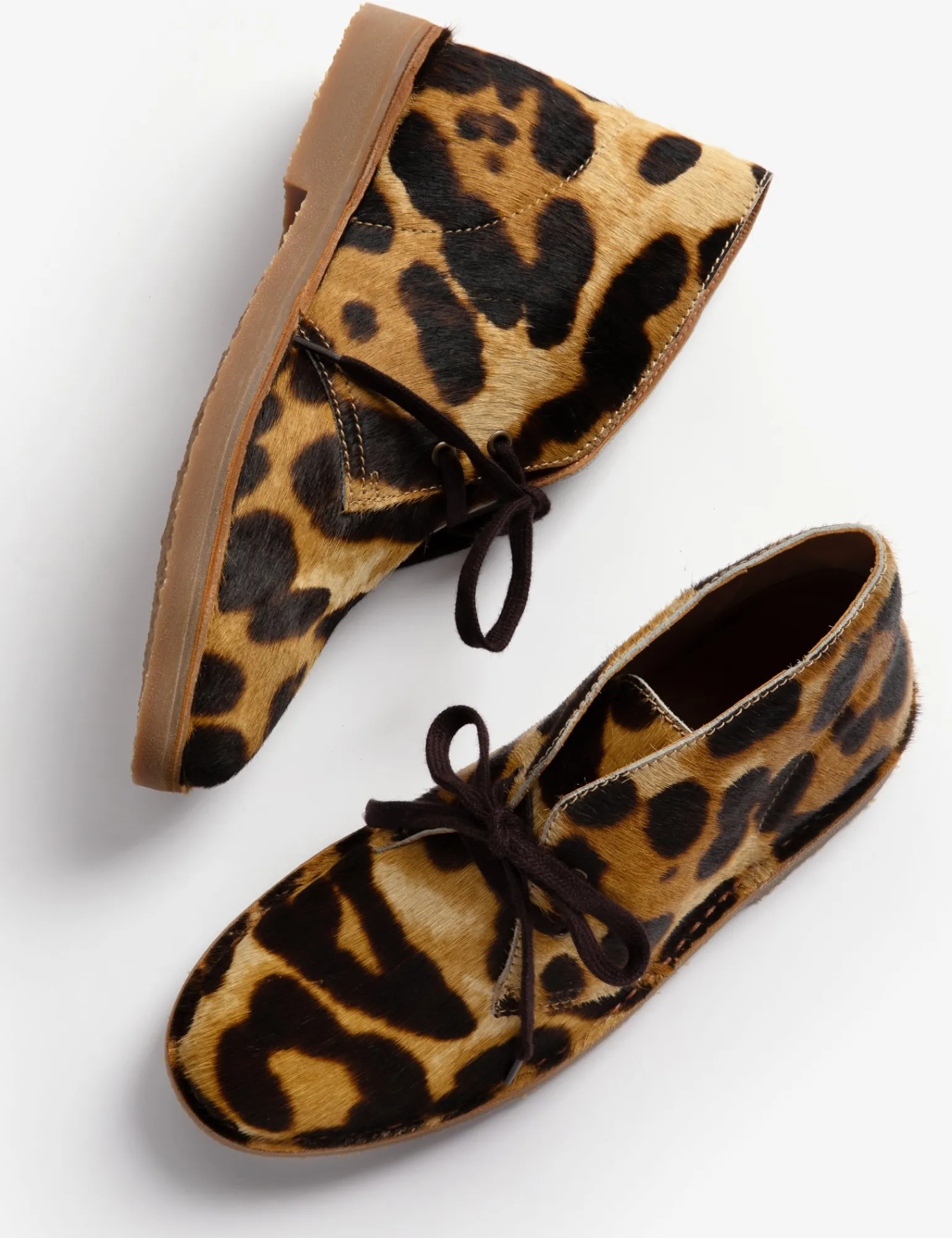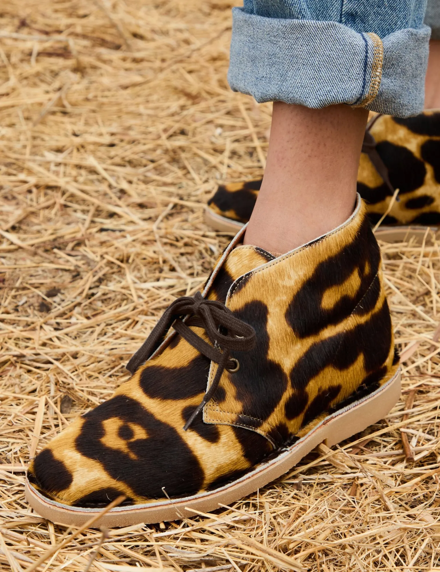 A fun evolution of our Rambla style boot, the Apostle is a lightweight boot for transitional months. Designed in animal print pony hide and featuring a lace up design which offers a snug, bespoke fit, alongside contrast stitching and an easy crepe sole. These ‘Billy Construction’ boots are perfect for customers looking for a lighter option to more wintery pony styles, like the Incredible range. Pair with cropped jeans and a pair of marled cotton socks for an effortless autumnal look.