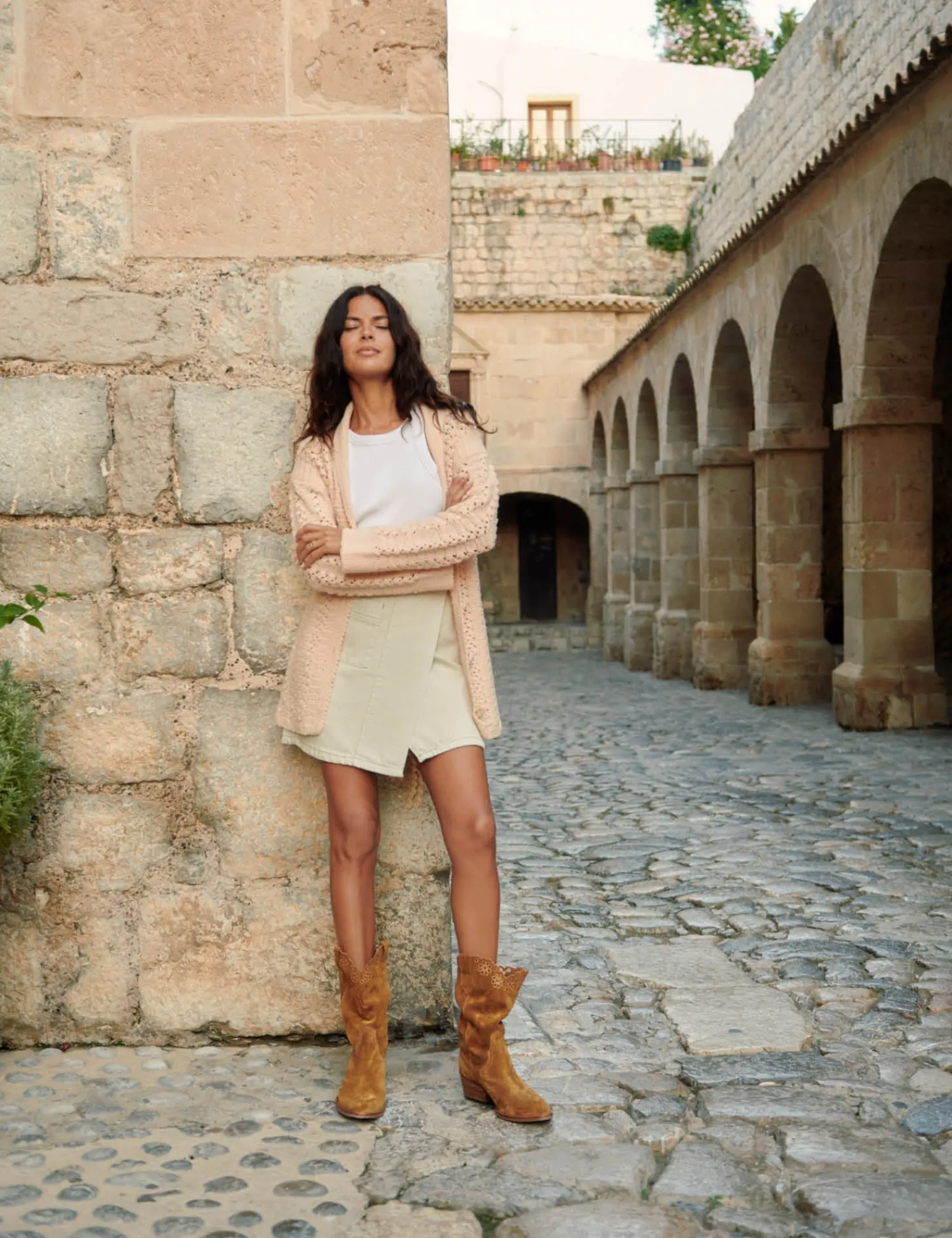 Own the western aesthetic with these beautiful Jesse cowboy boots. Made from the softest, sustainably sourced, Italian oiled suede upper, in the perfect tan, with a moderate Cuban heel, making them easy to wear all day long. These boots feature a feminine broderie anglaise detailing, and go beautifully with jeans and a chunky knit in winter, or a silky dress and big earrings in summer…