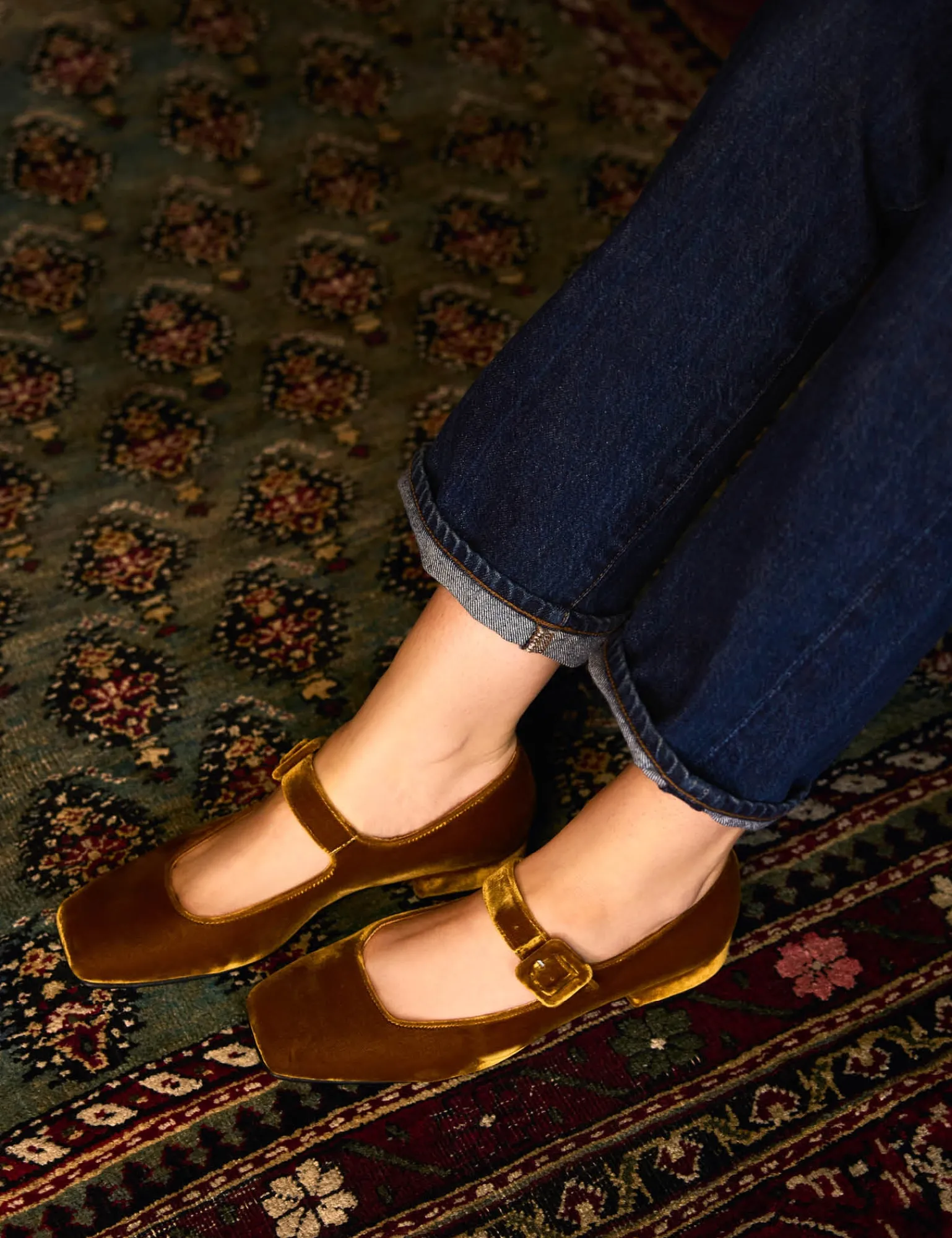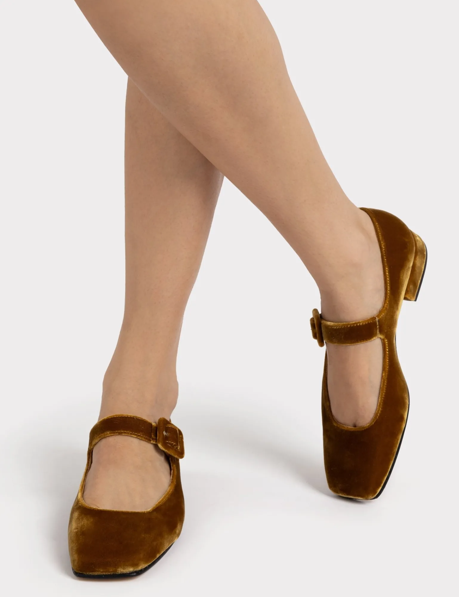 Our low-heeled Mary Jane epitomises quiet luxury. Designed in our signature, slim-fit Mary Jane style, and crafted in sumptuous saffron velvet, a top a leather sole. These elegant shoes are perfect for any party and equally smarten up any casual look. Pair these with jeans and bare feet for late summer and then add a fun pair of socks or tights once the colder weather comes. A truly timeless look and a great wardrobe investment.