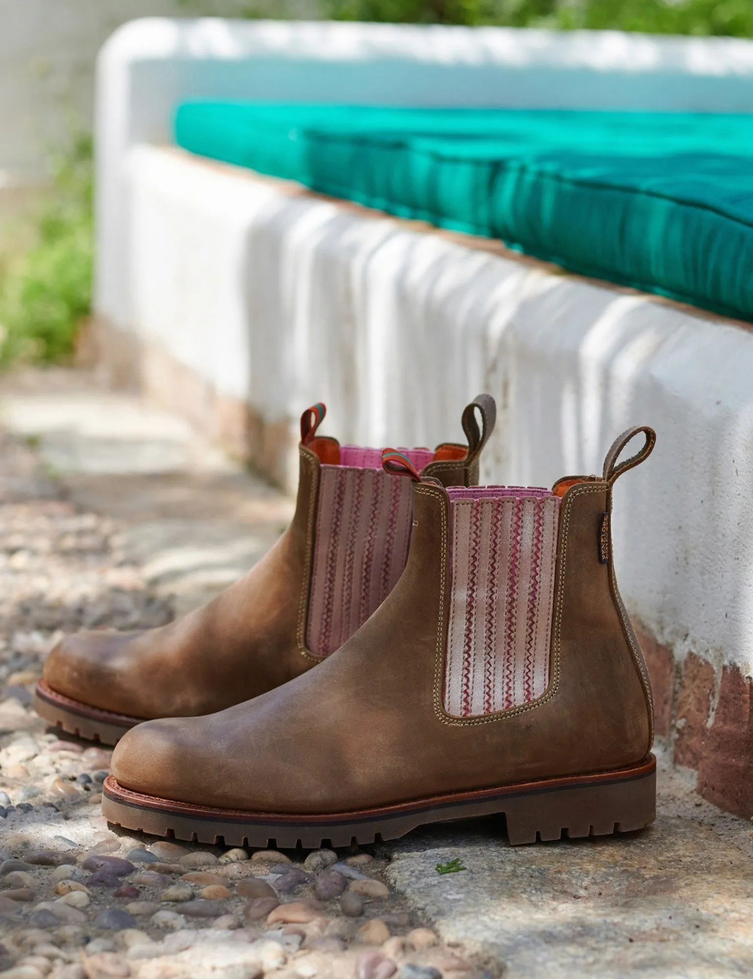 A boot for all the elements! Our favourite Chelsea boot shape re-worked in resilient leather on a hardy rubber Goodyear welted tread sole. This tough leather boot is given a twist of femininity with a flash of metallic leather as the trim detail. A true all year round style with classic signature details.