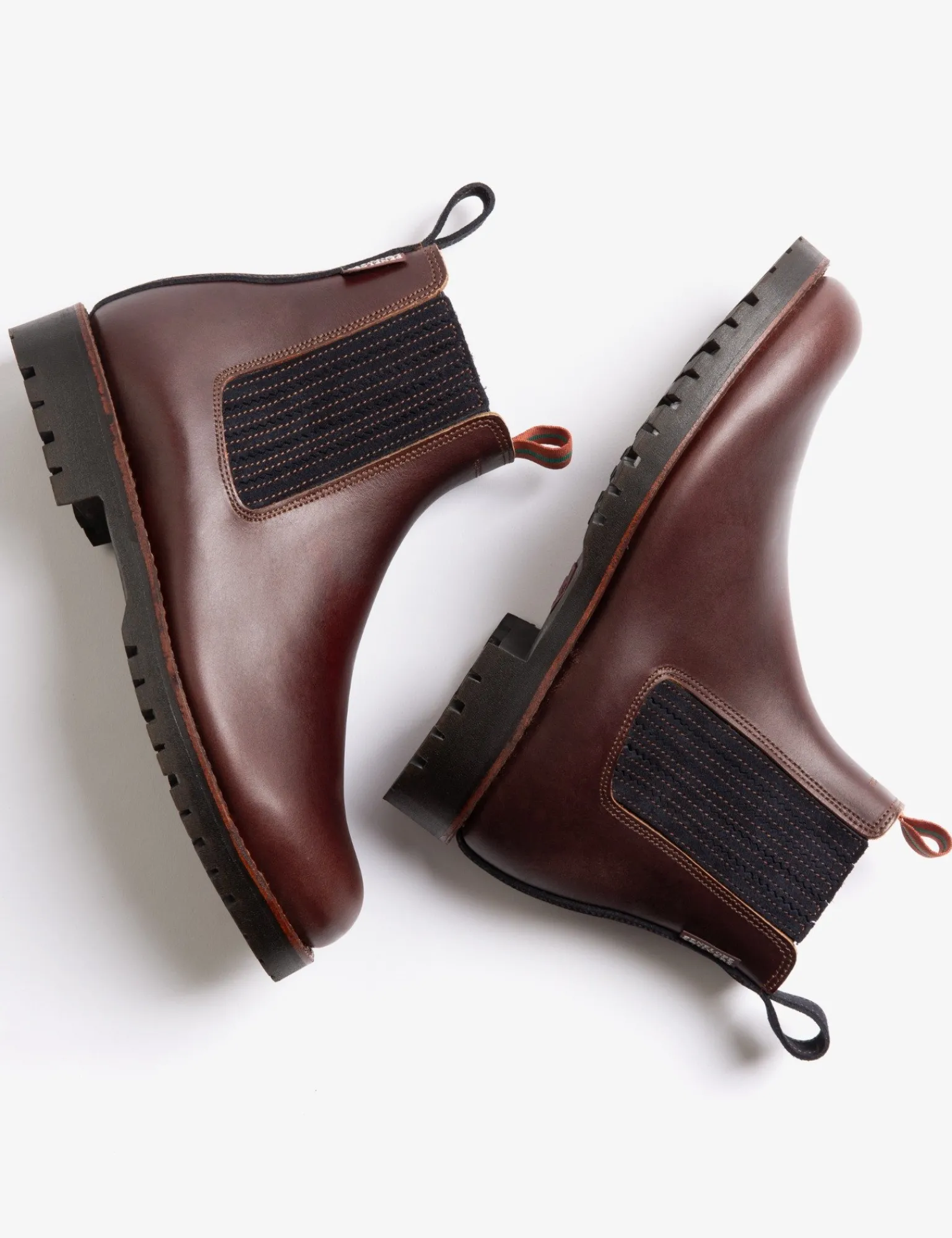 A truly utilitarian style, the vegetable-dyed leather Oscar boot is a perfect workwear style for autumn. Fashionable and functional, this boot looks as good in the city as in the country and will get better the more it is worn. In two-tone leather with suede and lined in luxurious fleece, the Oscar can be worn from autumn through to the coldest days of winter.