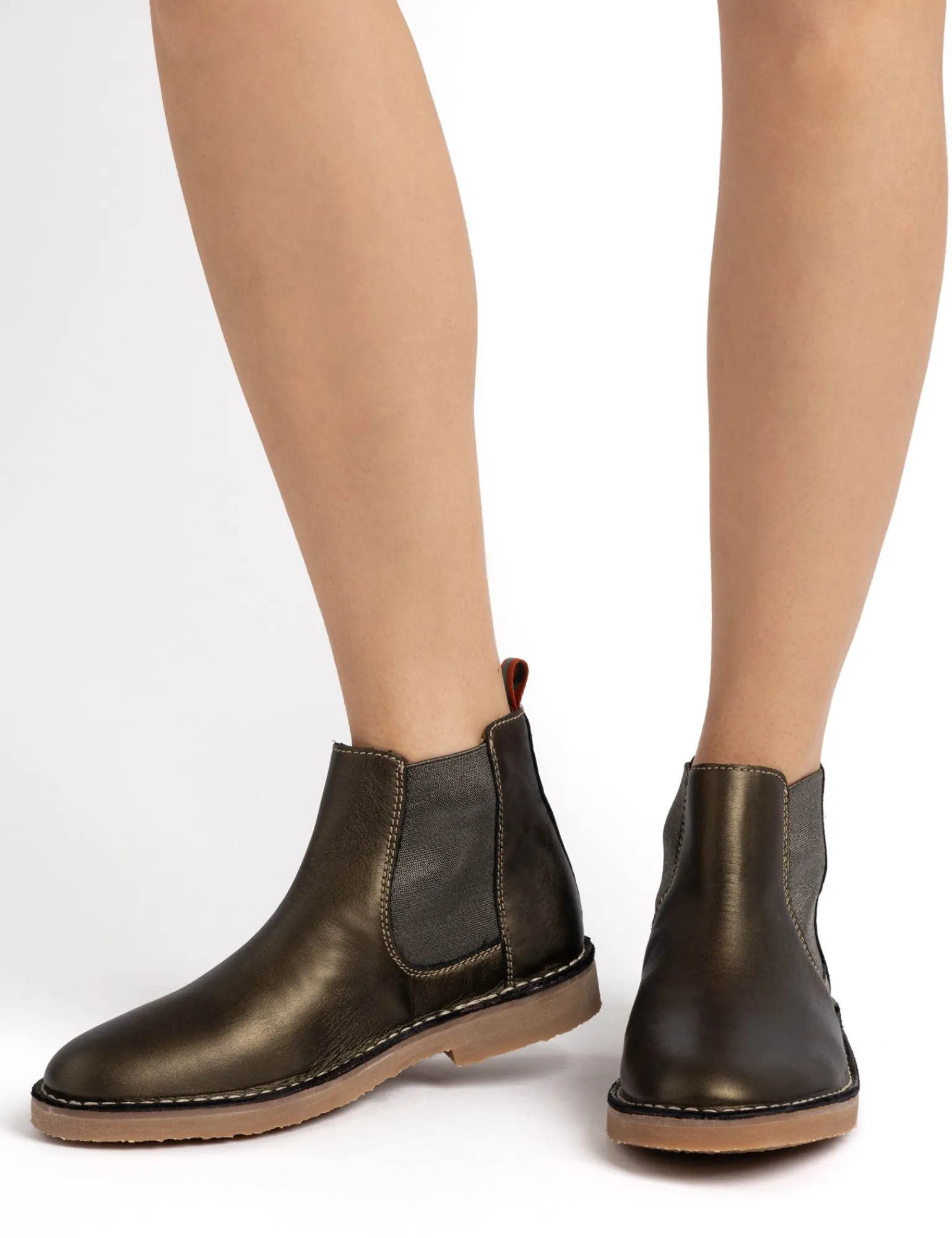 Penelope Chilvers Rambla Metallic Leather Boot Khaki Clearance