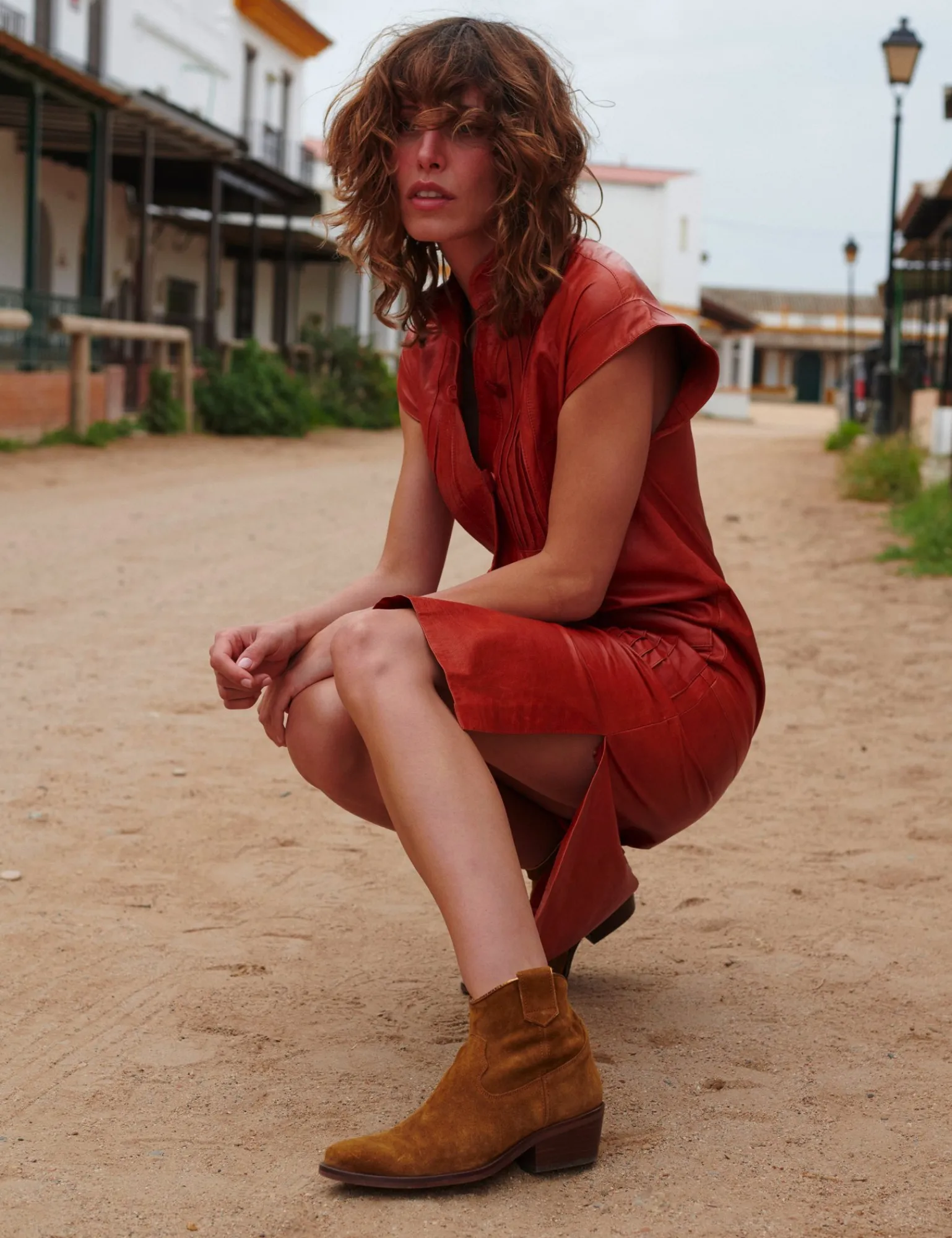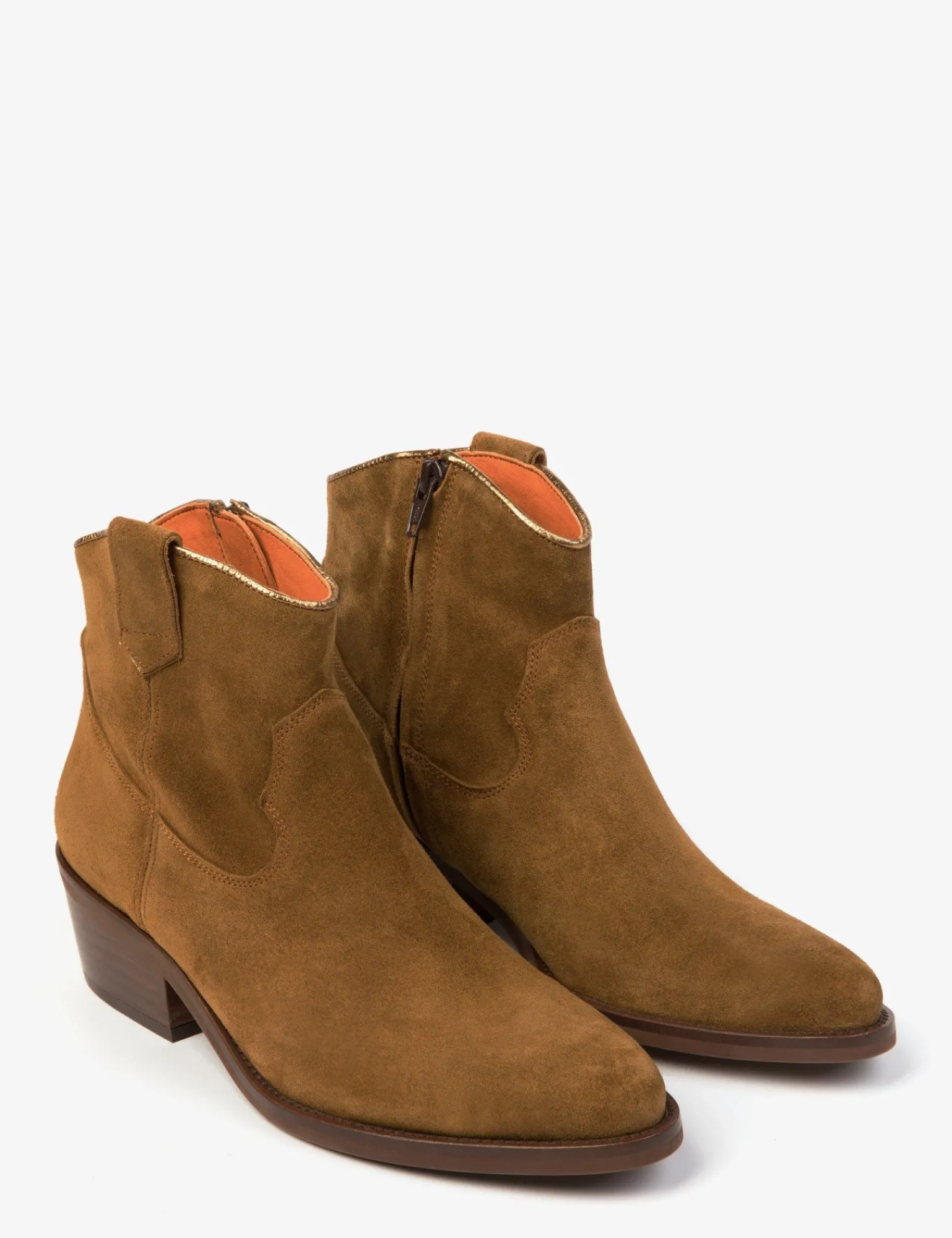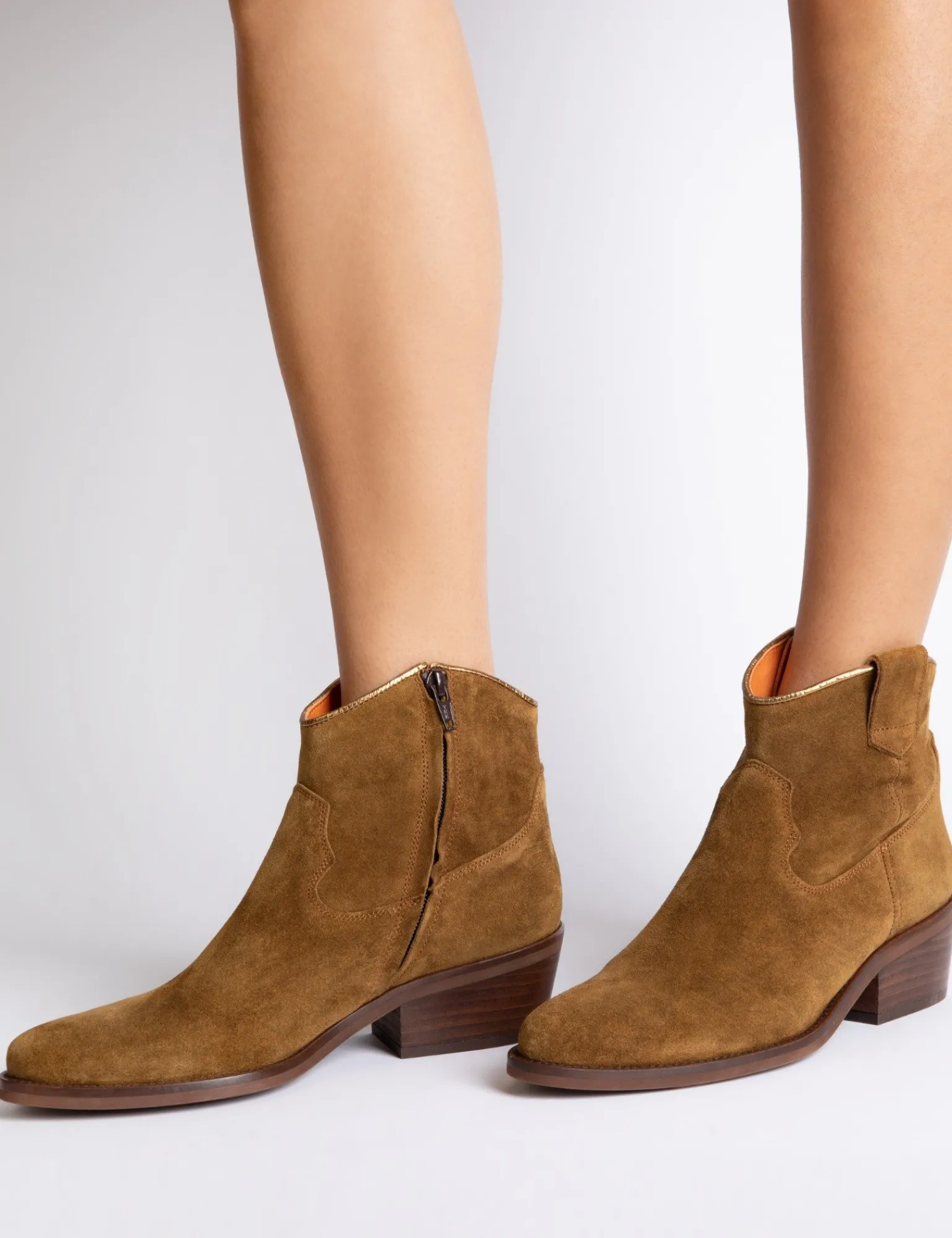 Penelope Chilvers Cassidy Suede Cowboy Boot Tan New
