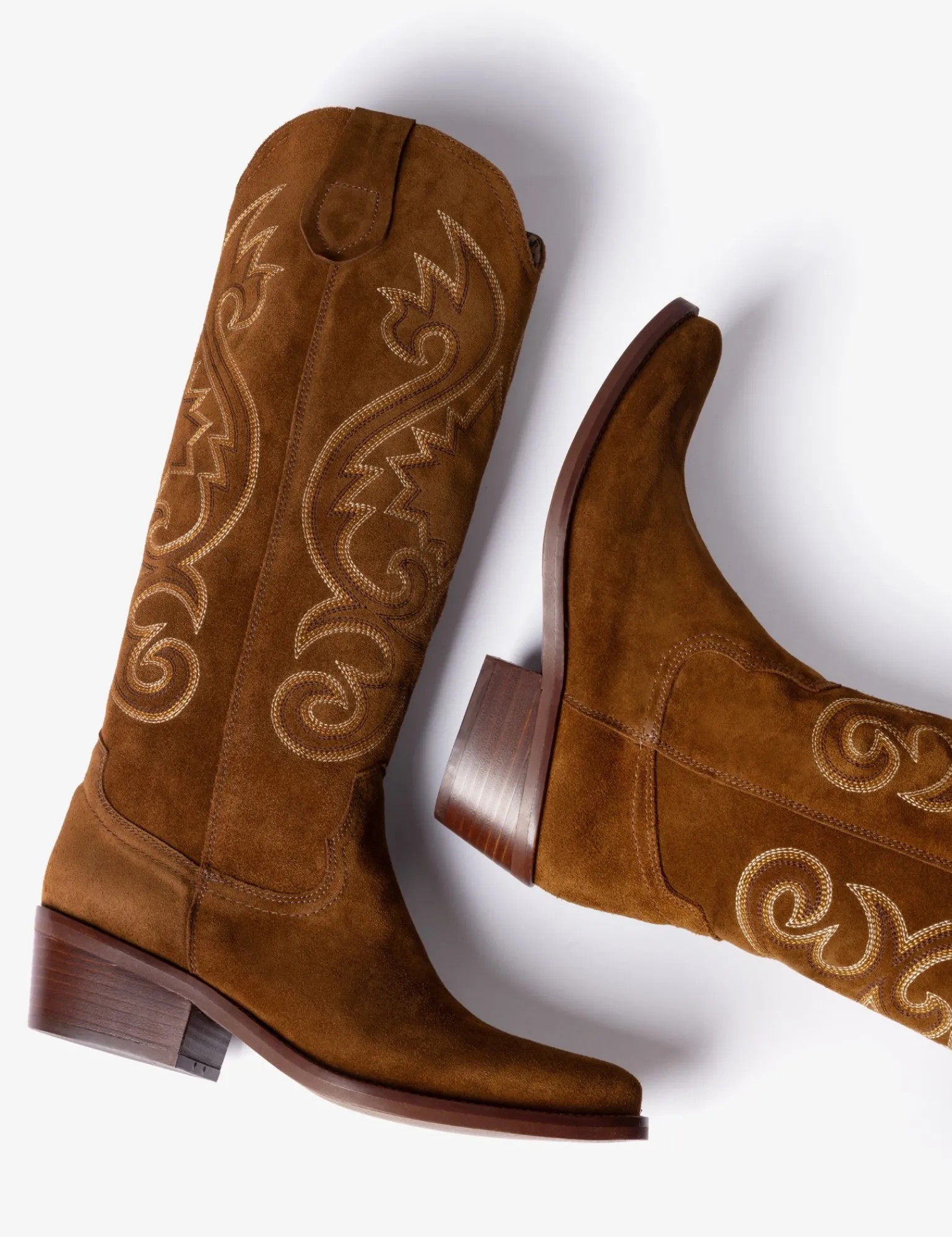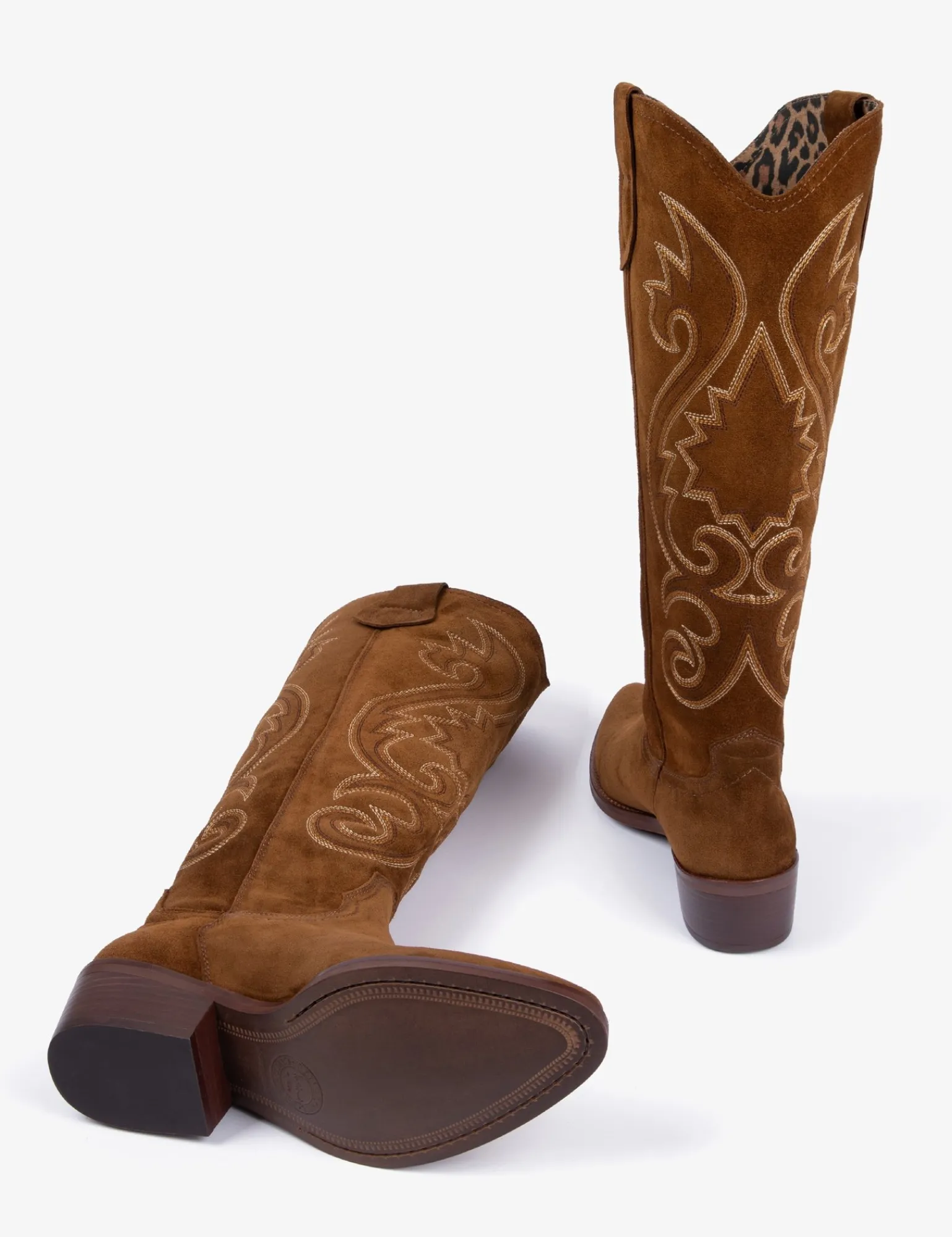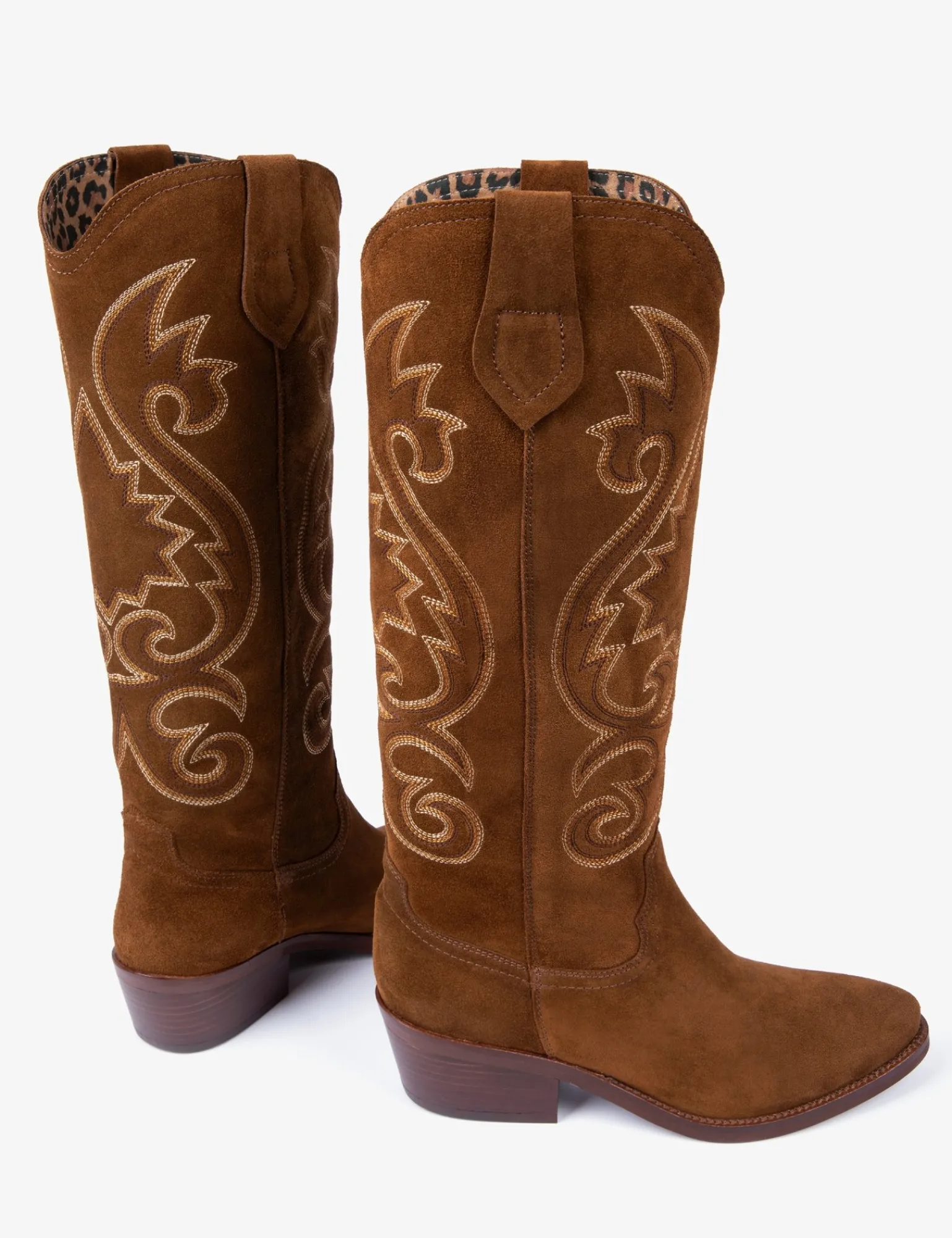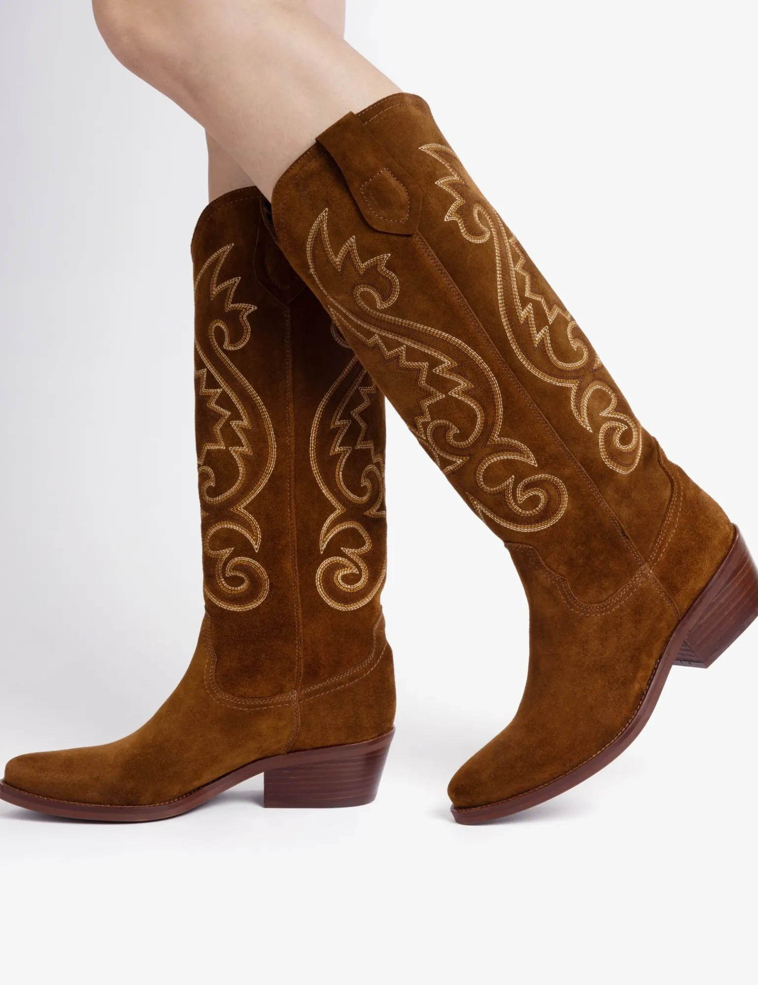 Penelope Chilvers Cowgirl Suede Embroidered Boot Peat Clearance