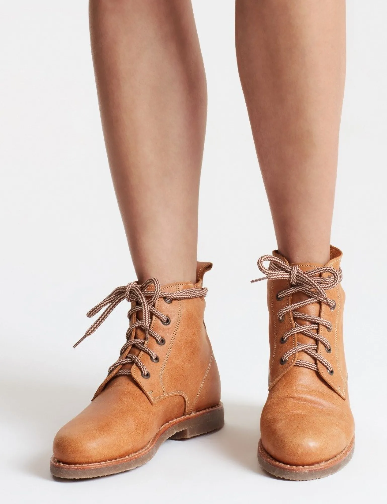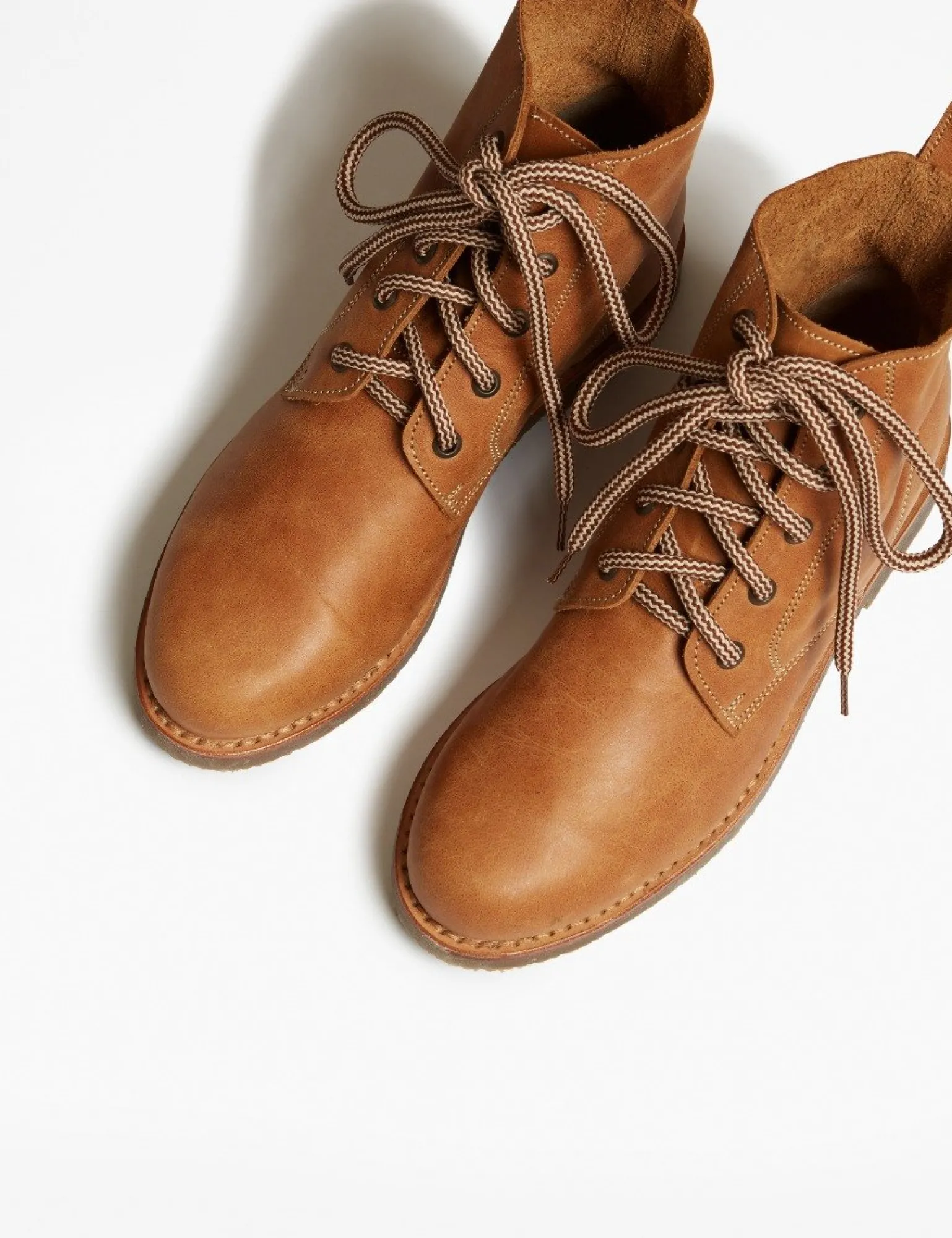 Our best selling lace up in soft Spanish leather is designed on our Safari last, guaranteeing the same great fit and comfort that our customers have loved for so long. This soft boot has a Goodyear welt crepe rubber sole so it is lightweight and flexible for everyday wear, and this true tan leather will get better as it wears…