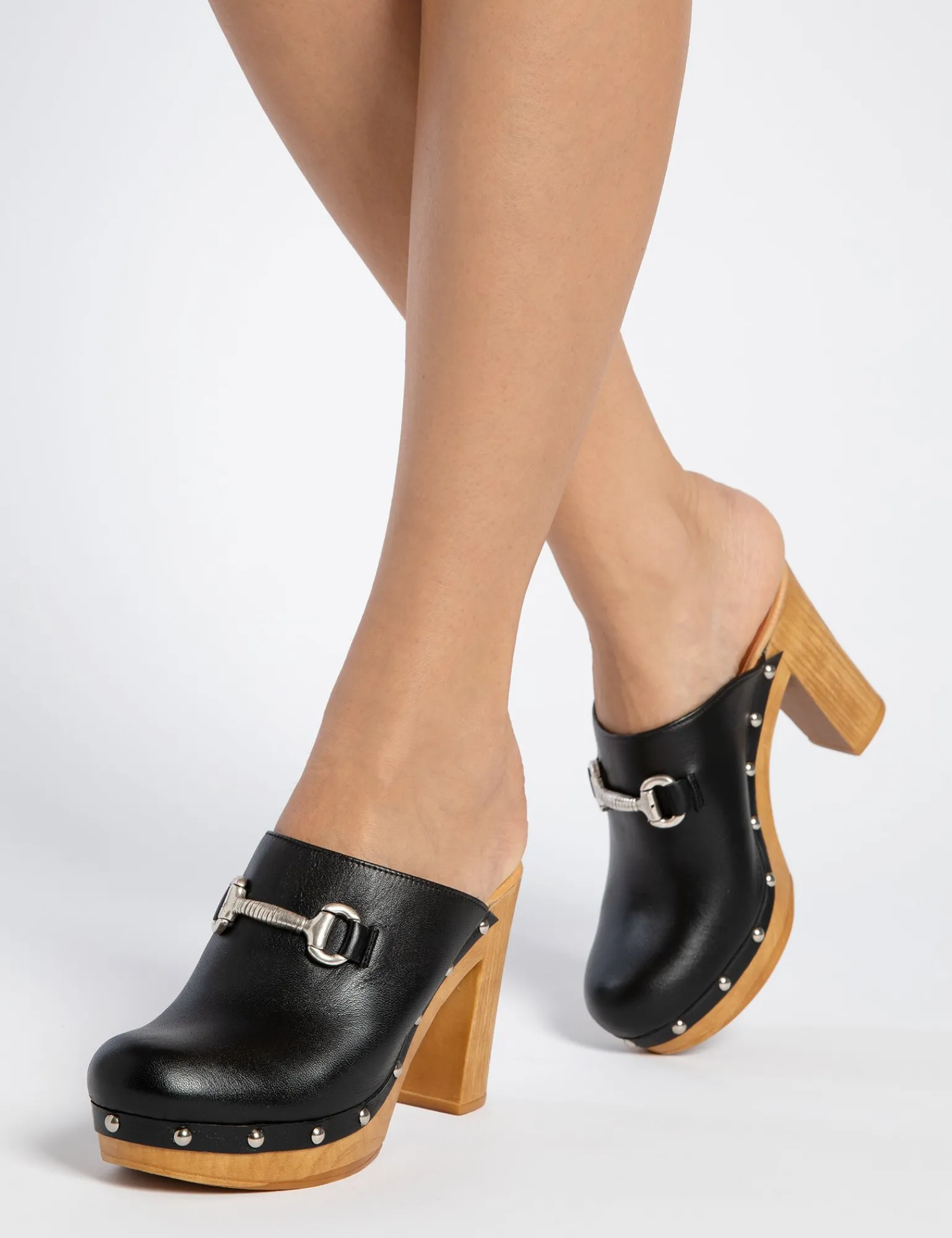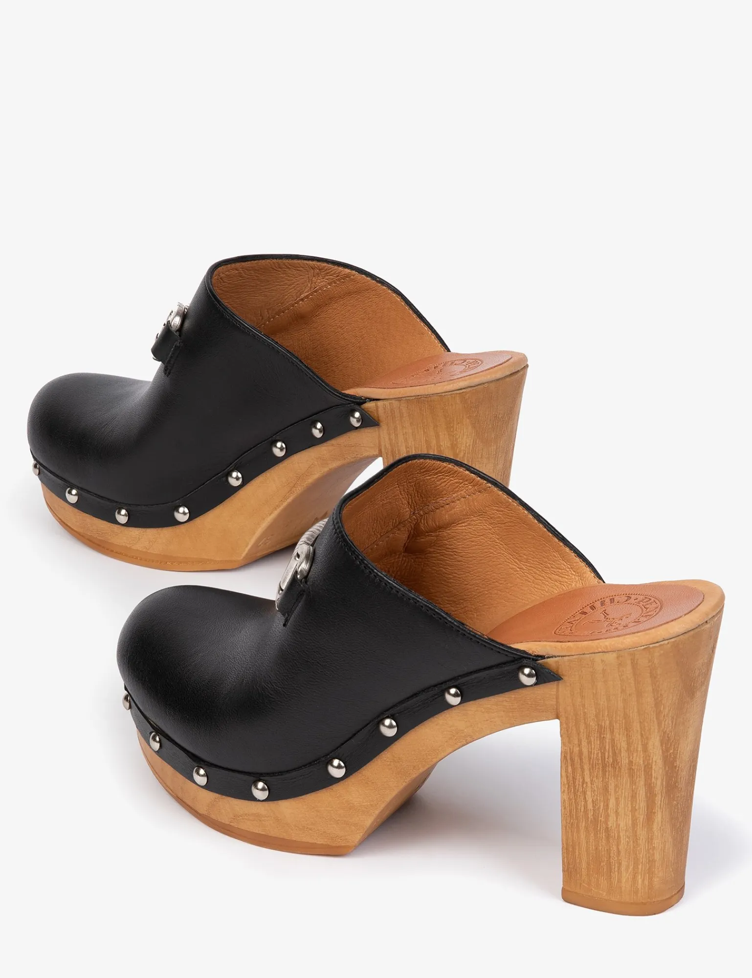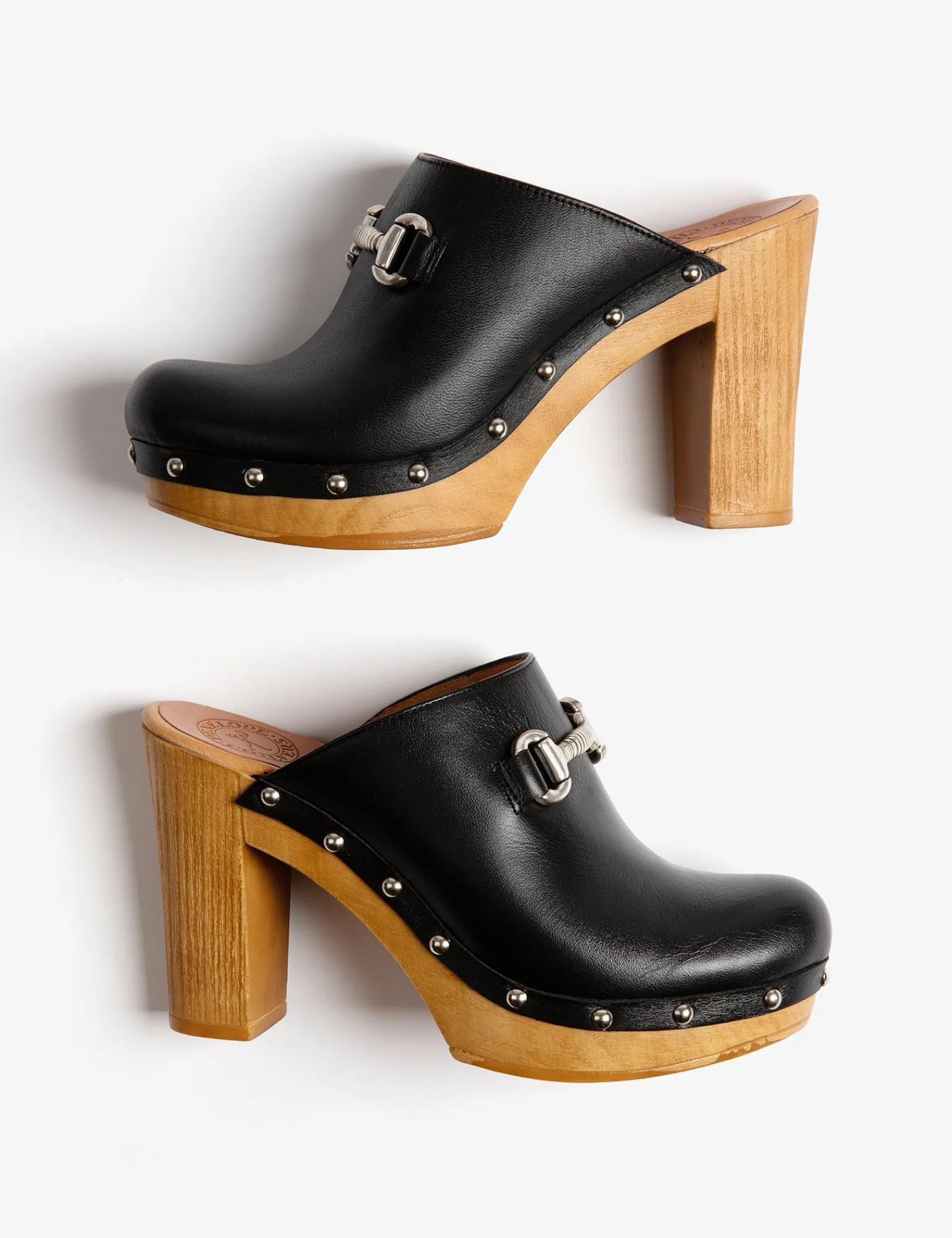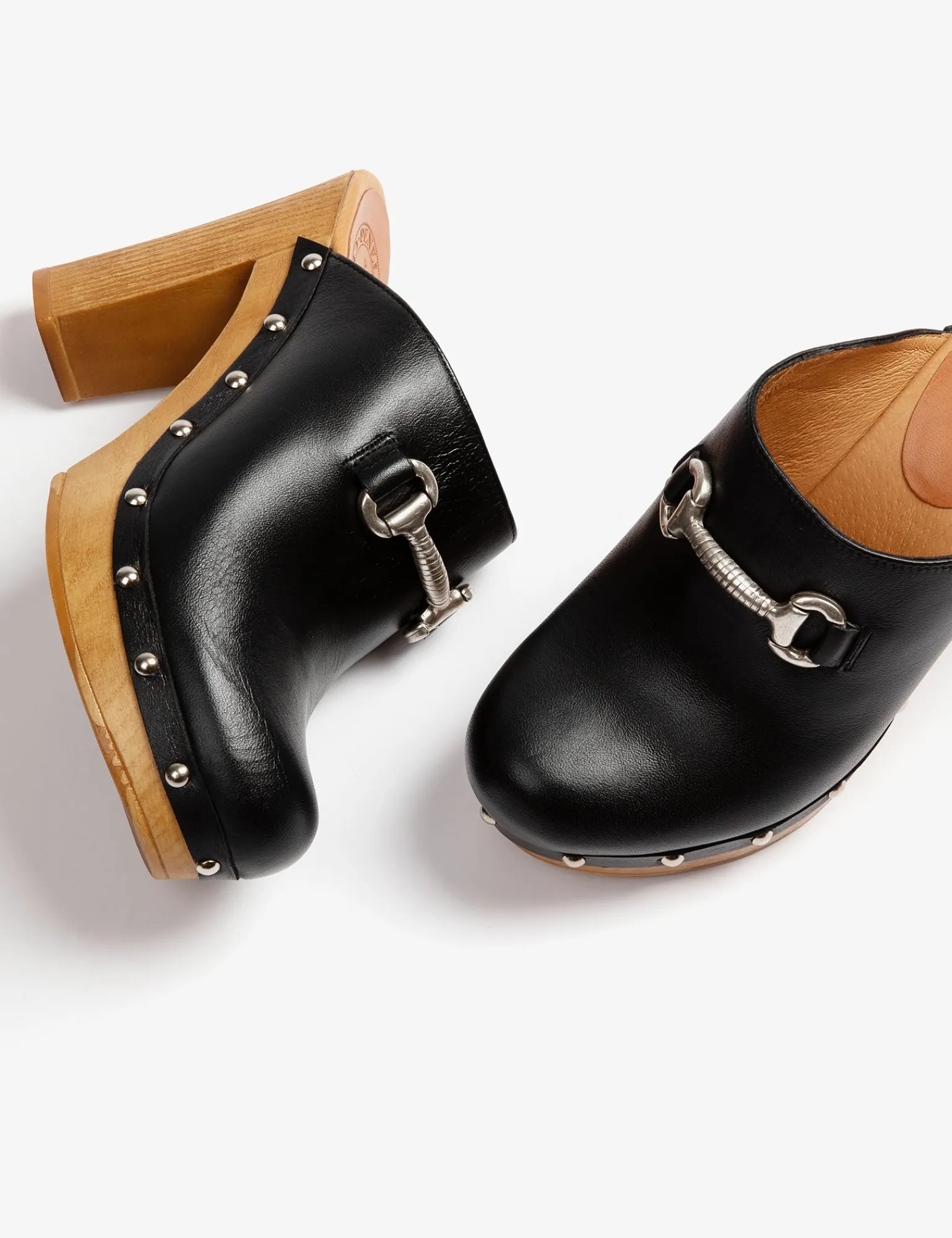 Penelope Chilvers High Horsebit Leather Clog Black Online