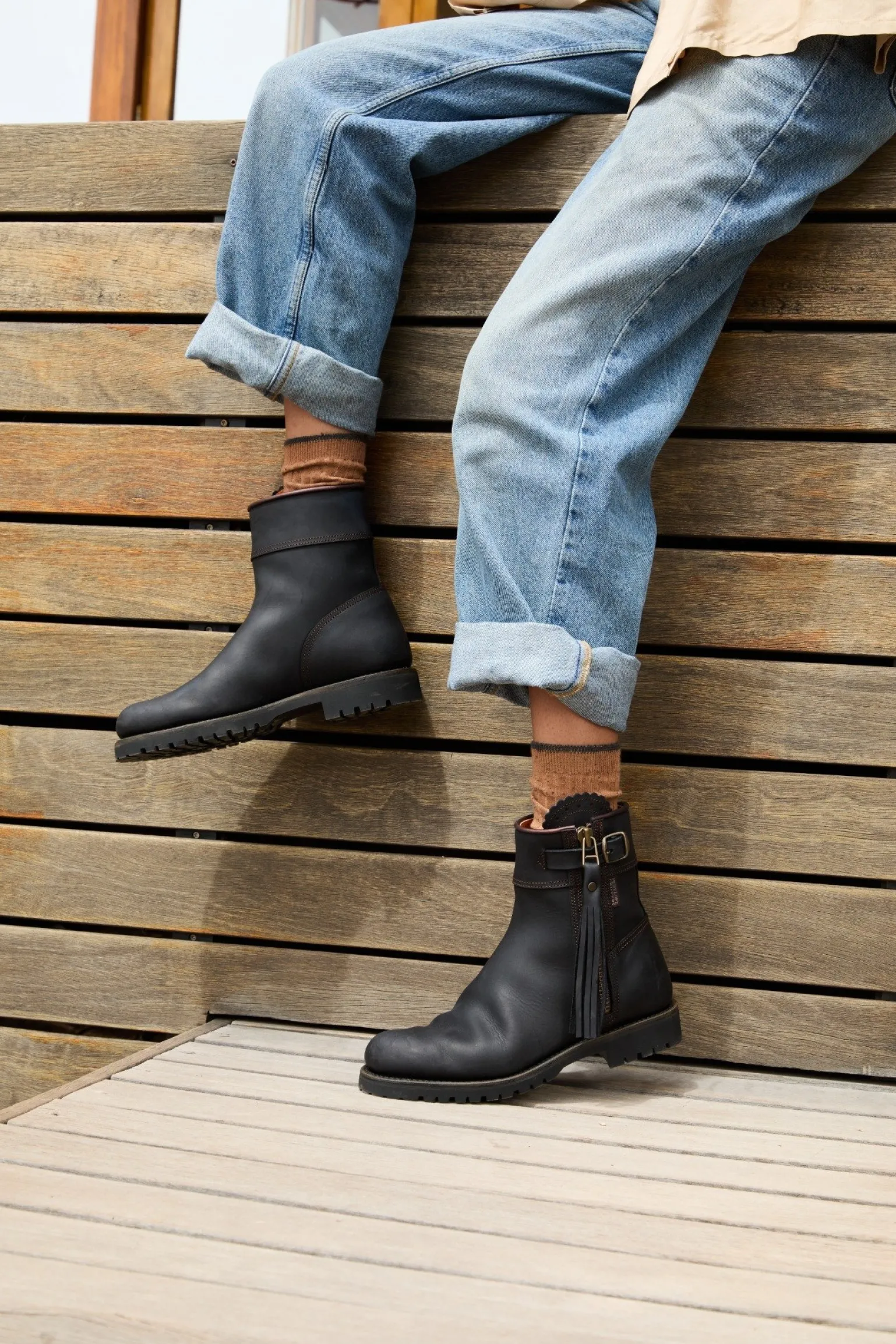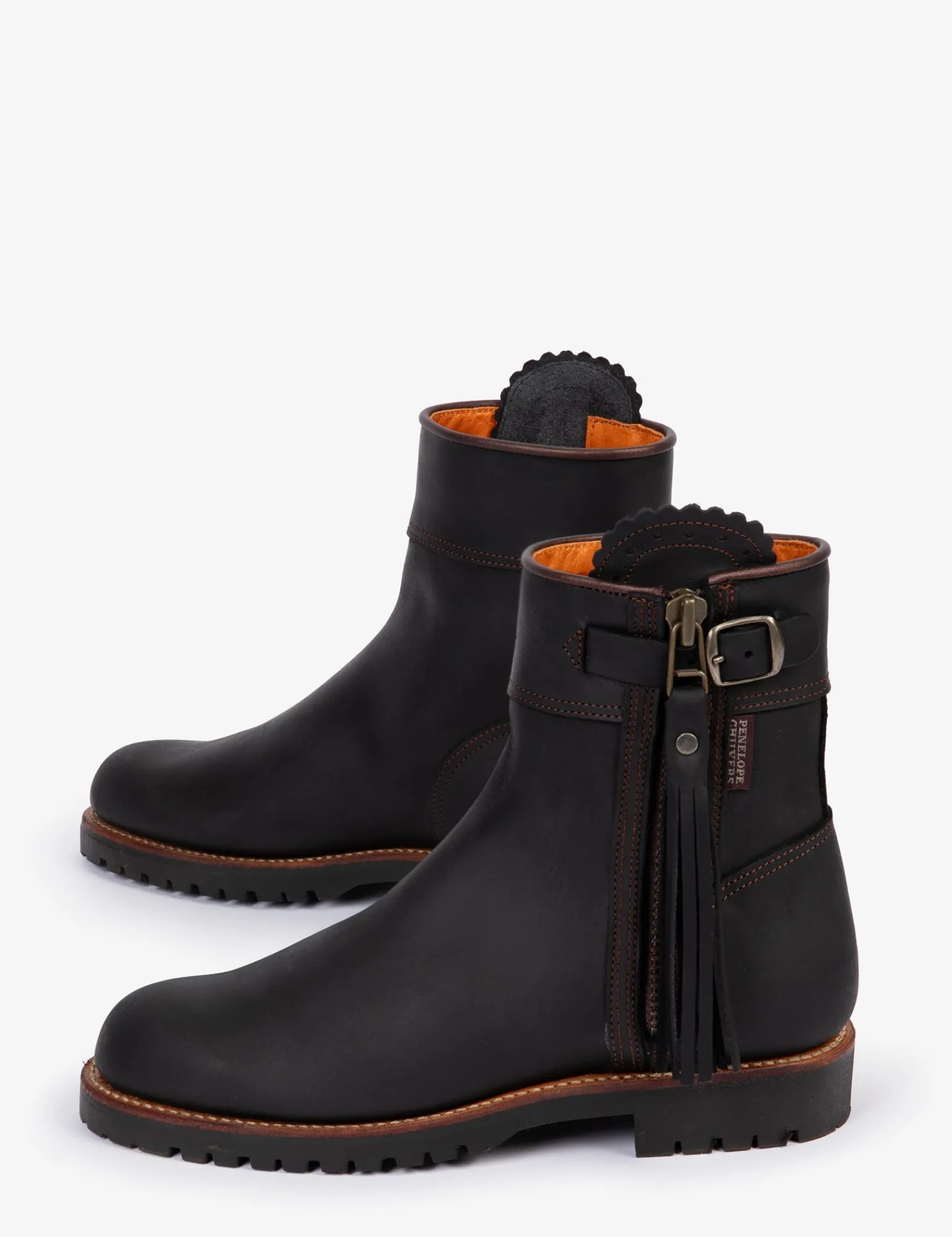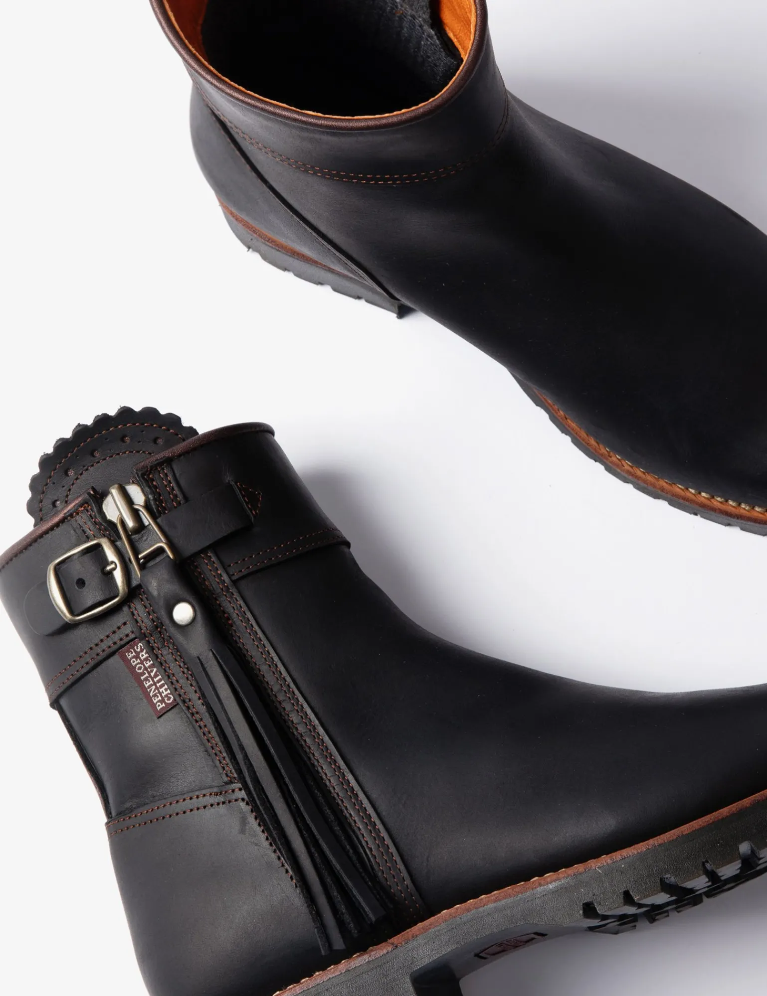 The ultimate balance of form and function, our Inclement Cropped Tassel Boot is being released in black this season, due to popular demand. We’ve worked hard with our artisans to create a softer black shade for this staple, and matched the style with worn-brown stitching, old gold hardware, finished with a rust metallic leather trim. Our Inclement range is much loved for its immense durability. Waterproof for up to 20 hours, these boots are made using a sustainably sourced weatherproof suede that is oiled and Scotchgard™ treated for maximum water repellence. They have a protective inner gusset to give you further weather protection and are lined with Texalive™, a high-tech sustainable membrane designed to be waterproof and allow your feet to breathe, wicking moisture away and keeping them fresh during brisk exercise. These boots are built on a Goodyear Welt which can be resoled and are lined with our burnt orange sustainable goatskin lining, sourced locally.