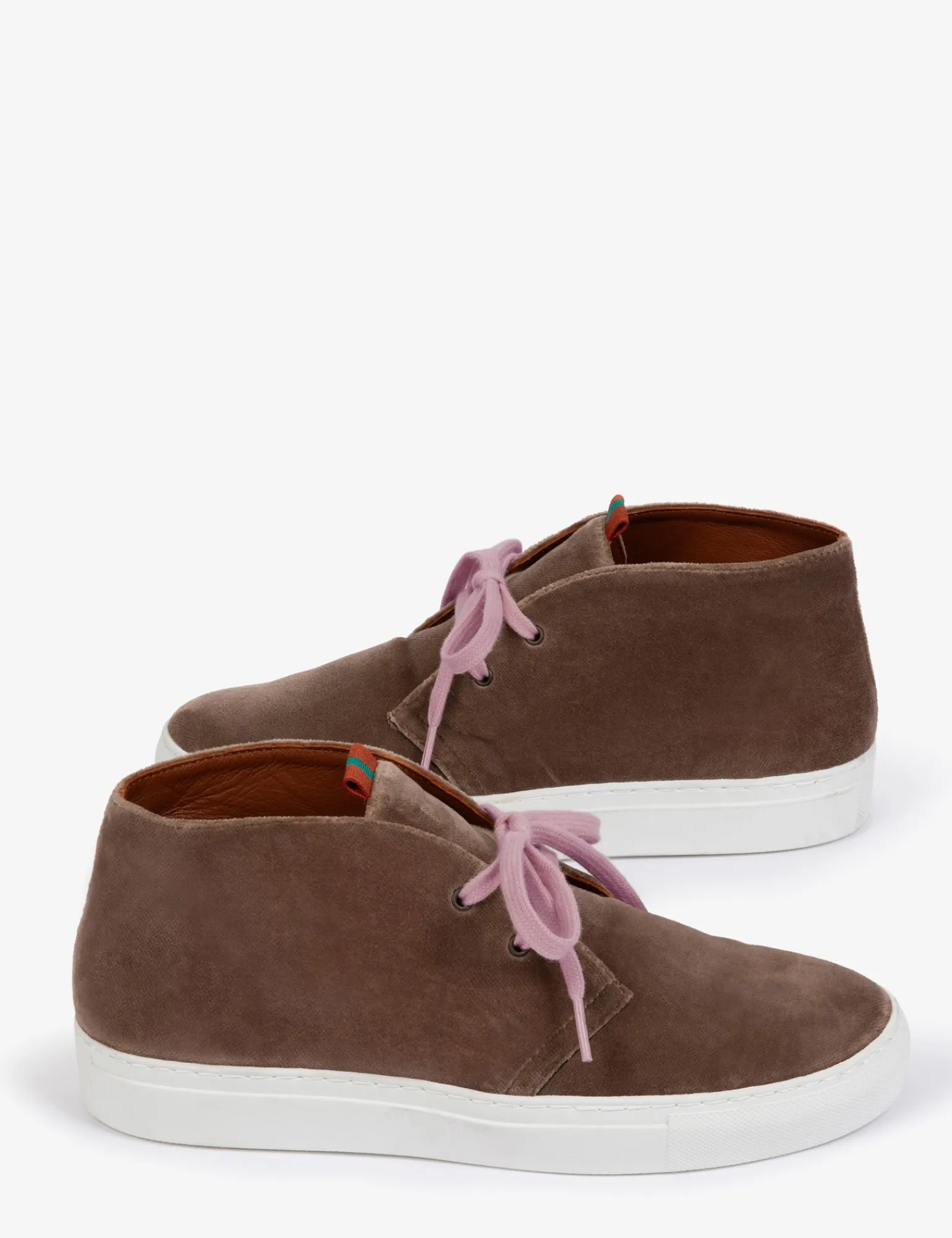 The Jungle is the ultimate not-that-trainer-like trainer. Actually, it’s a boot on a trainer sole! It features all the benefits, with a nostalgic silhouette, supportive design, laces that will ensure a snug fit, and a chunky white rubber sole. But it’s also designed with classic influences, handcrafted in a rich cotton velvet that’ll get better with age. Available in either sand or navy and finished with contrast nylon laces to add that a sense of fun.