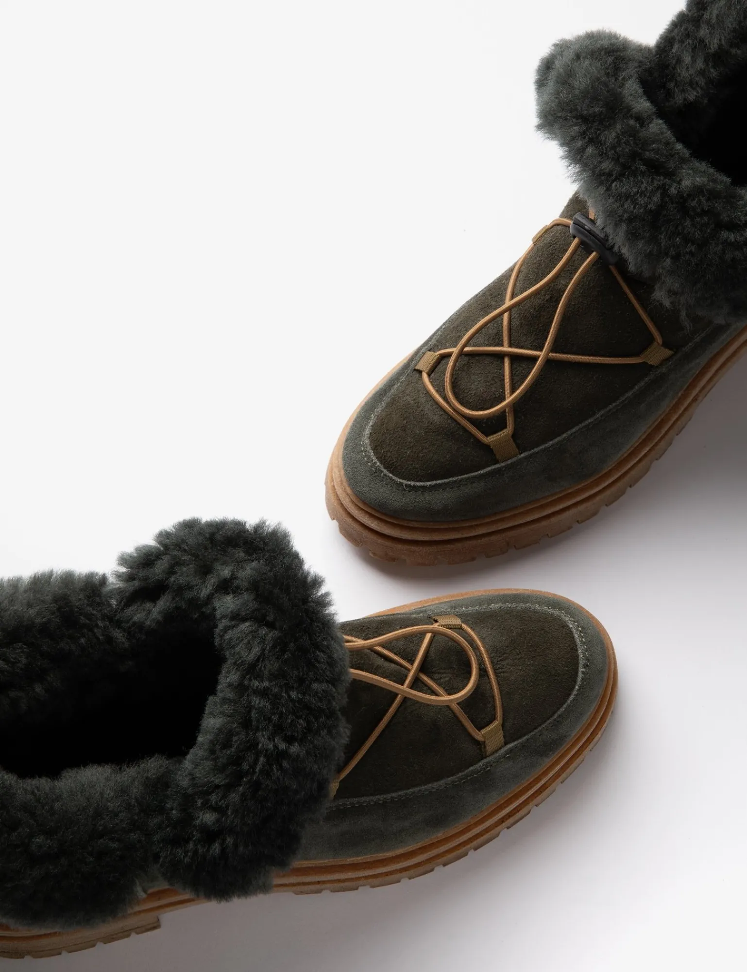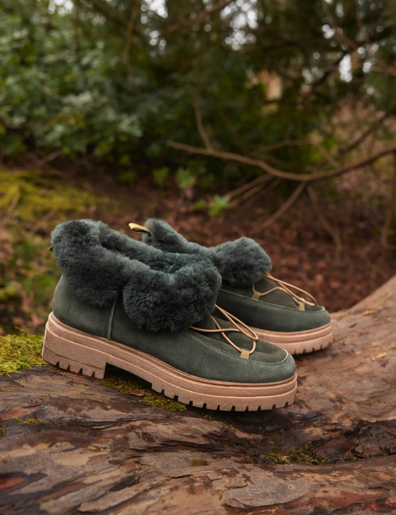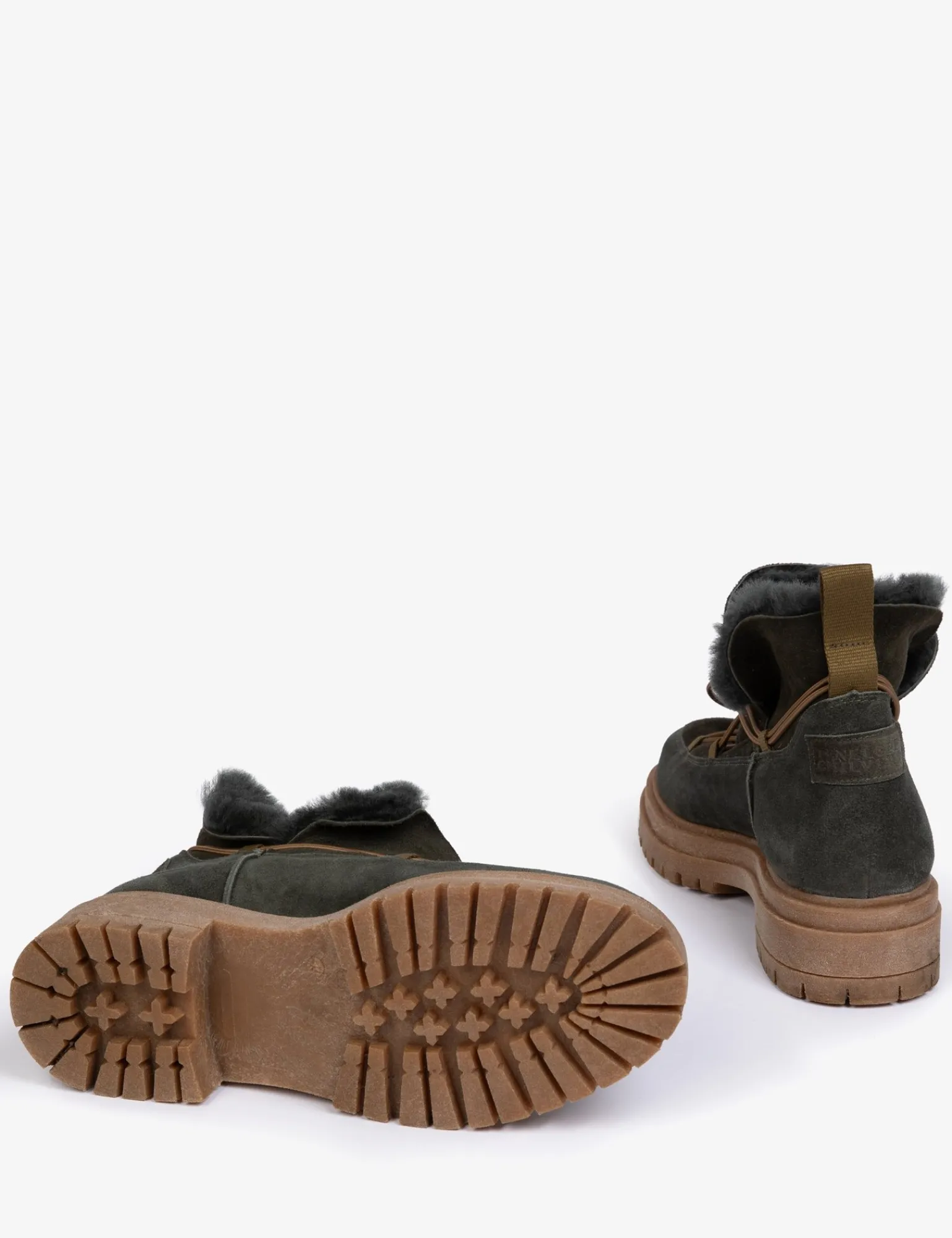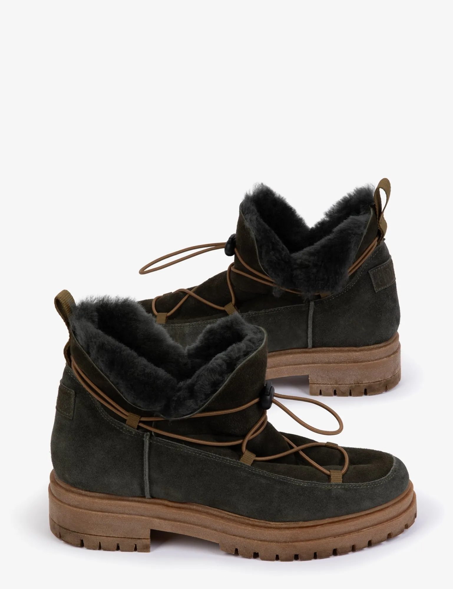 Penelope Chilvers Lomond Suede Shearling-Lined Boot Khaki New