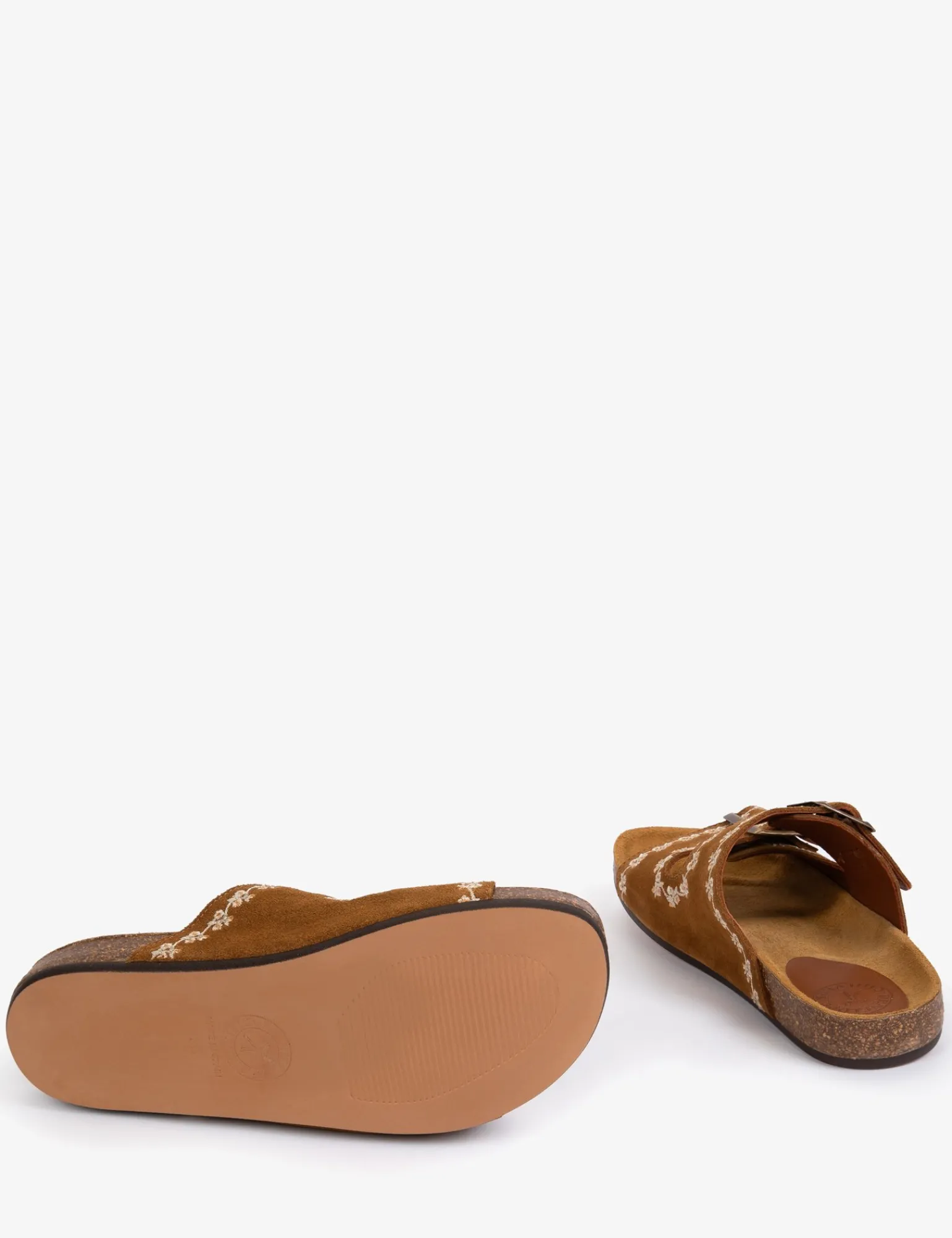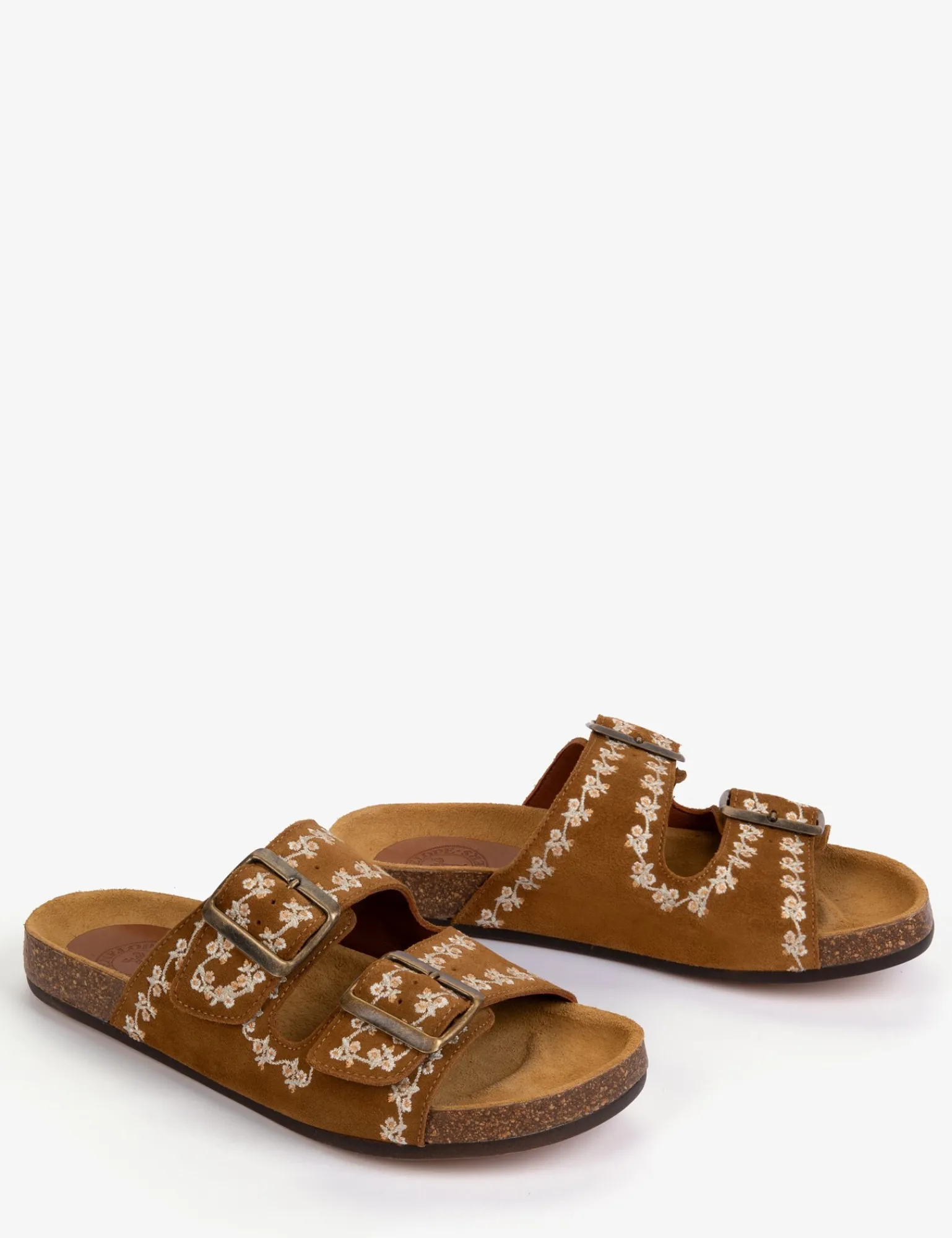 These Pool Suede Embroidery Slides are set to become your new best friends this season. Ideal for everyday wear and travel. These stylish and practical shoes in Tan are designed anatomically with moulded cork soles and adjustable buckles for the perfect fit.