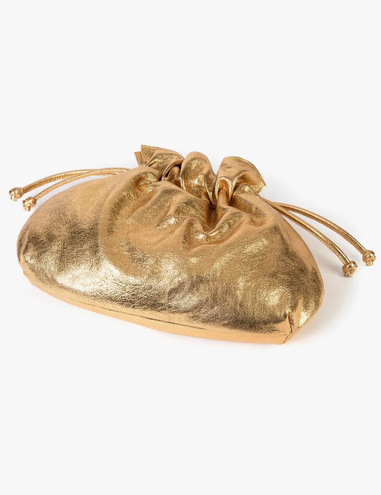 Penelope Chilvers Puffball Leather Clutch Gold Online
