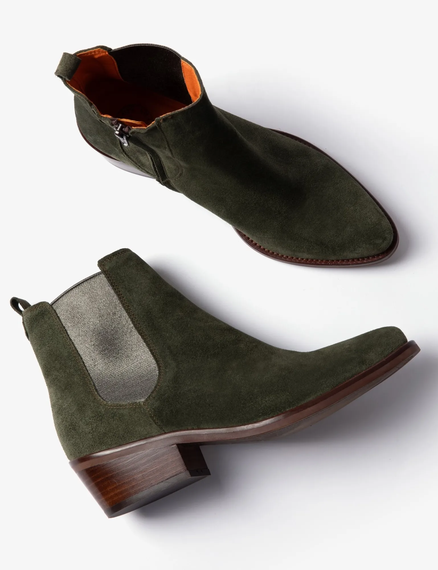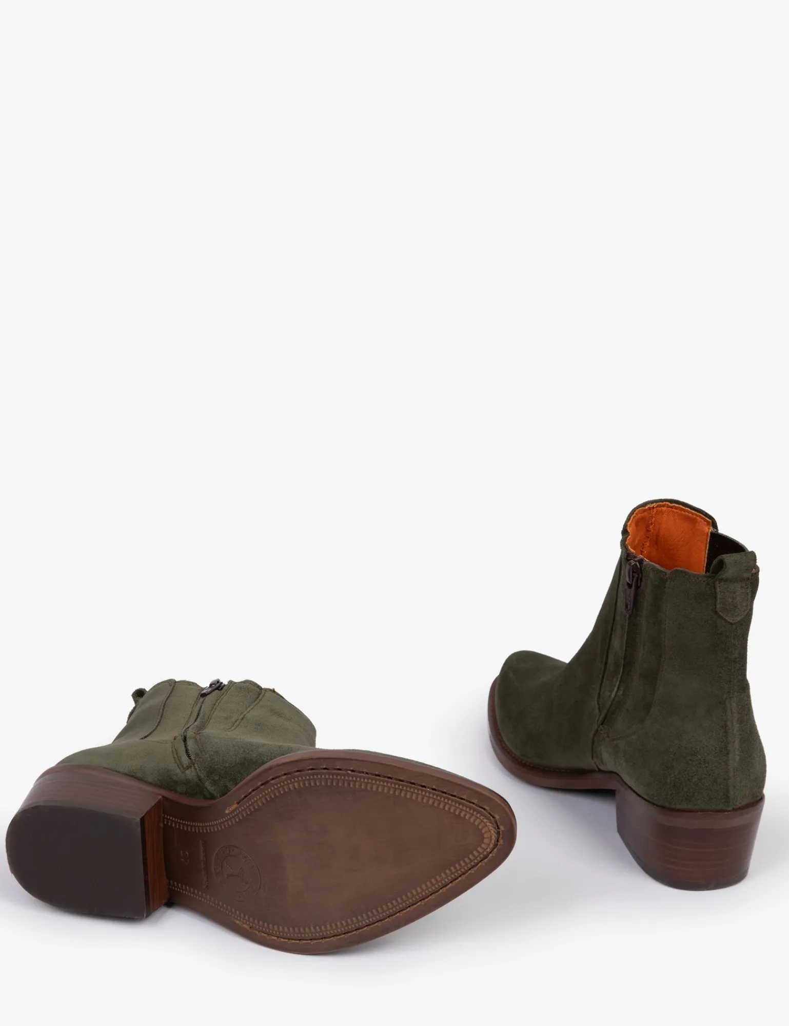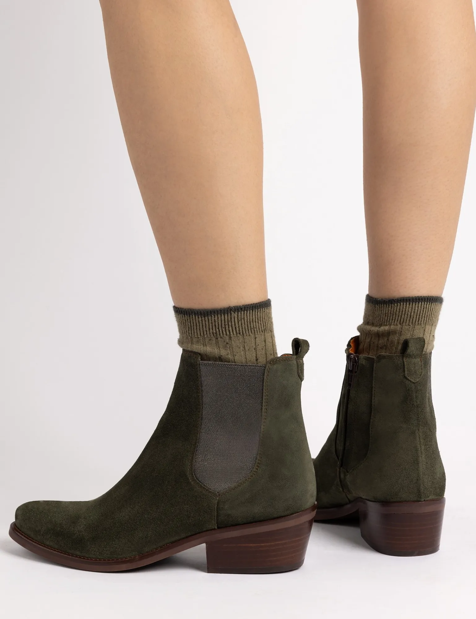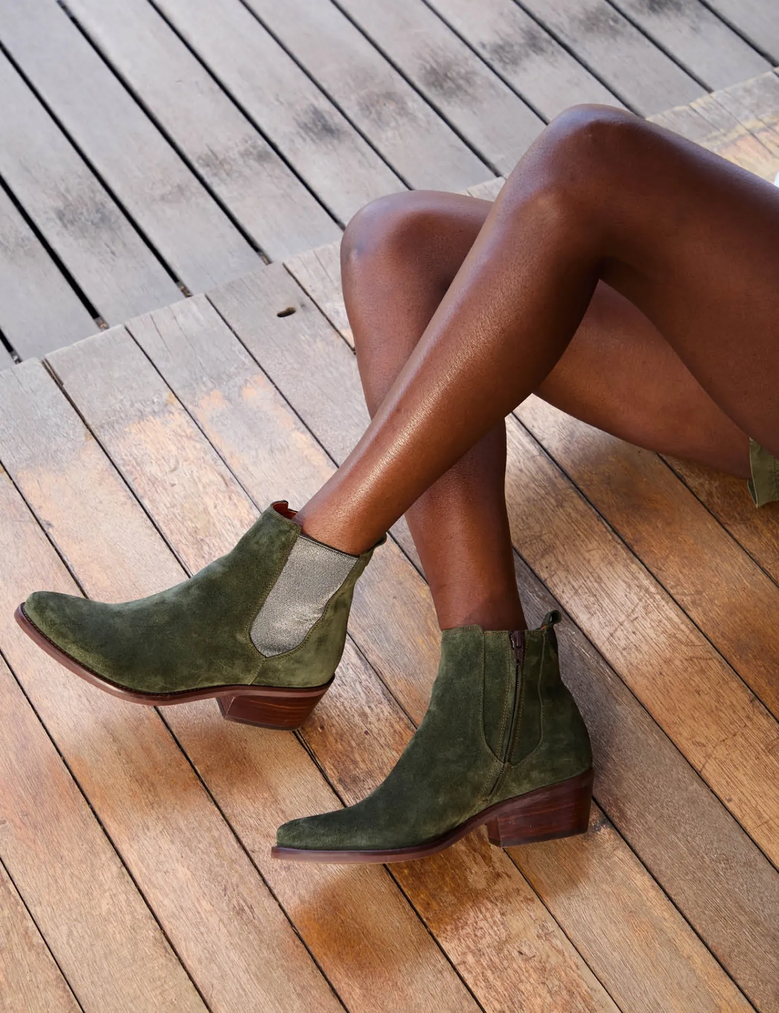 Introducing the Rove, designed on the same last as our much-loved Cassidy style, this piece is a perfect office-to-dinner kind of style. Designed in a soft khaki coloured suede and cropped to the ankle with a low Cuban heel, inside zip, and contrast satin elastic for added texture and ease – the Rove is an investment in elegance and ease. A great boot for country life, dinner parties or days spent out and about roving the city!
