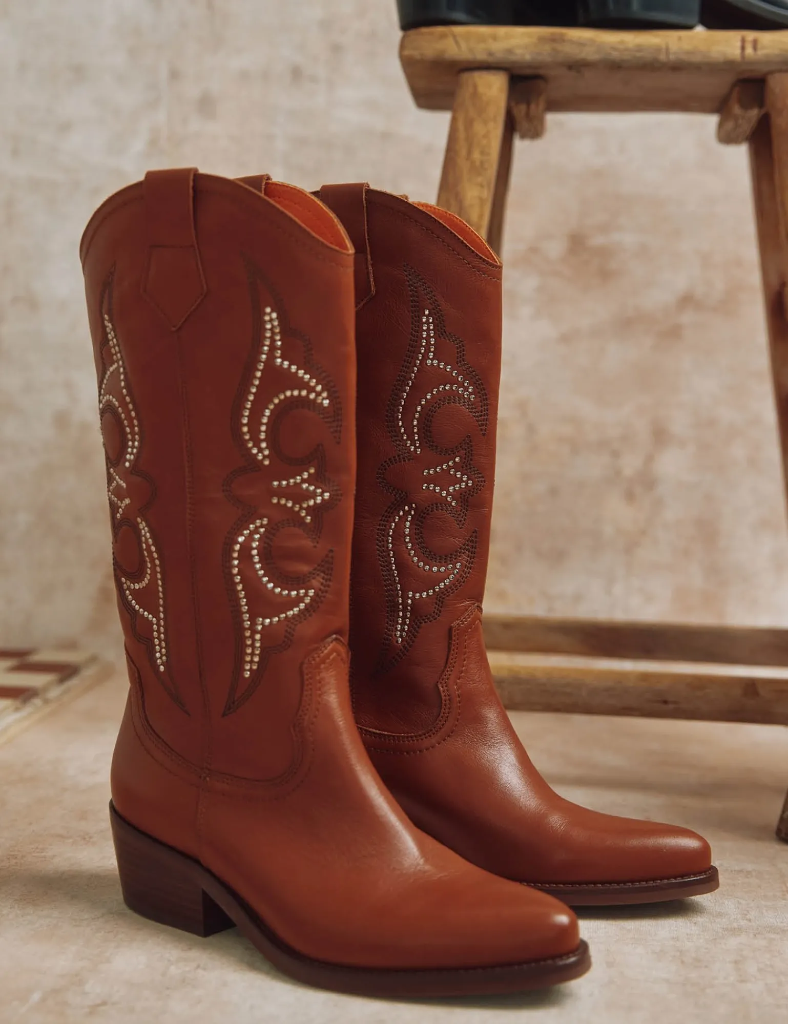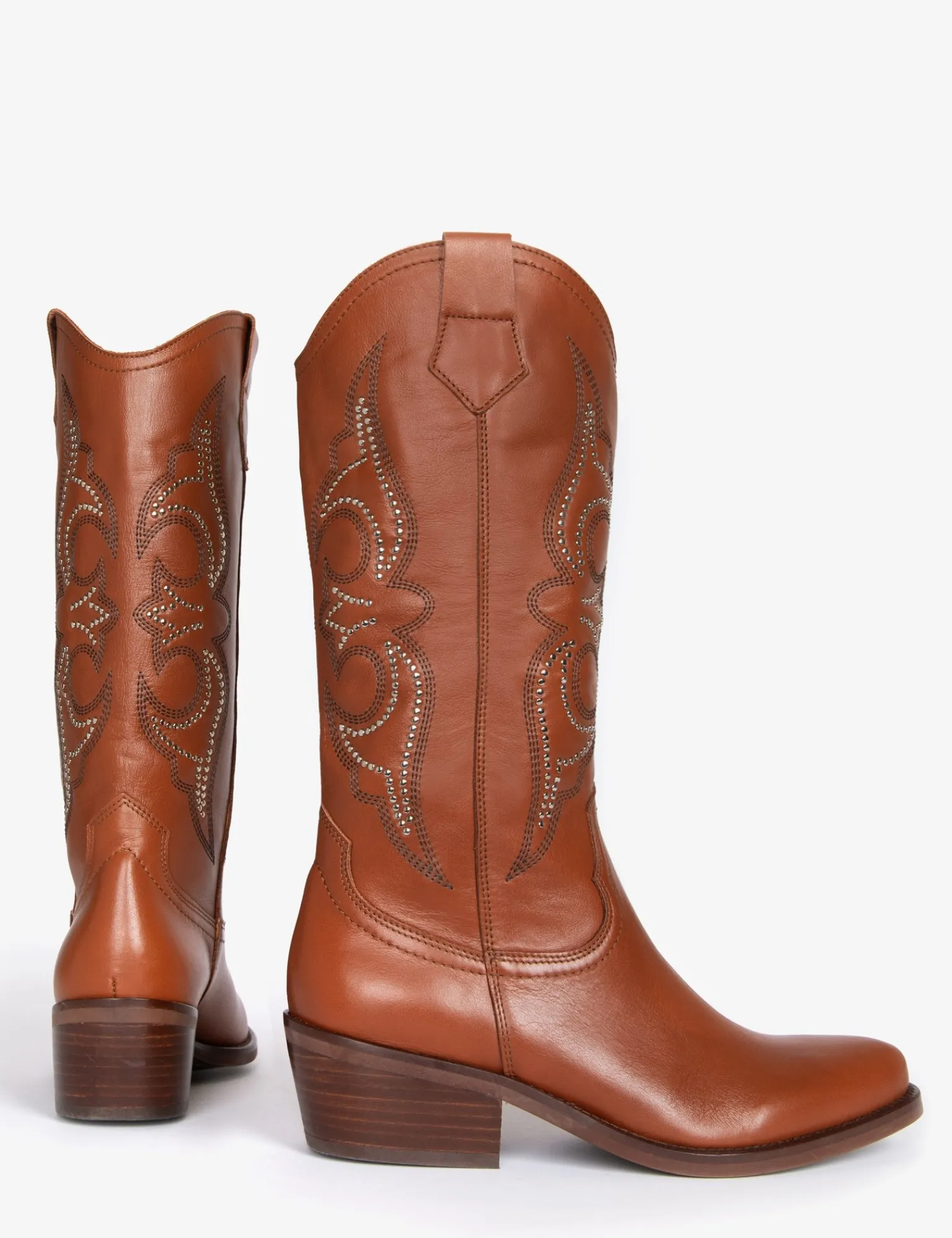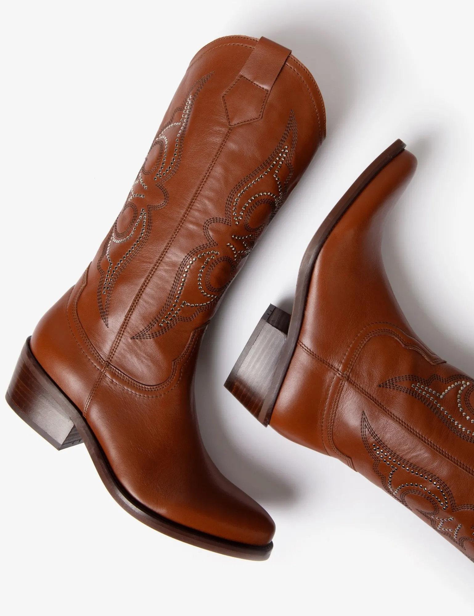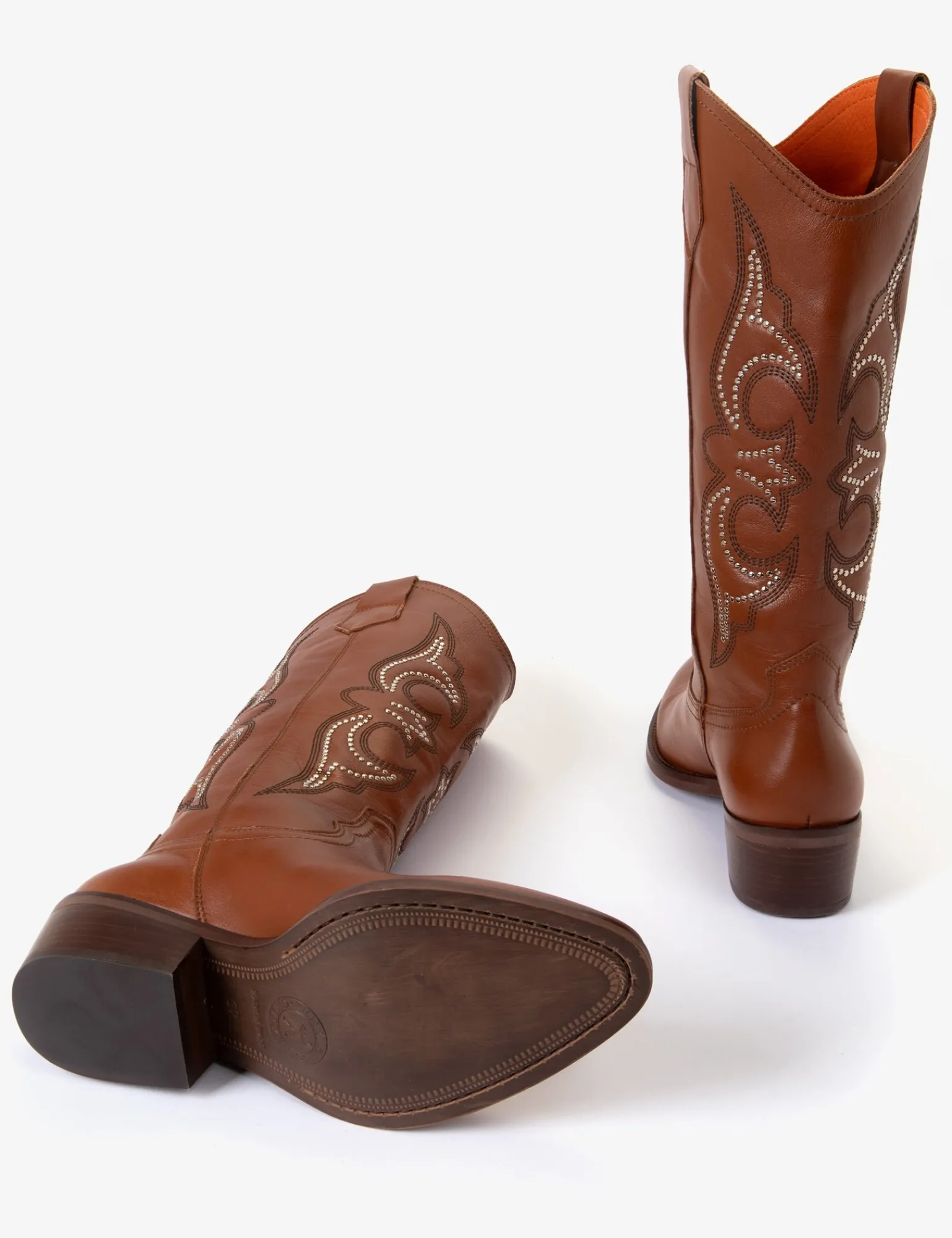 Penelope Chilvers Silvestre Stud Cowboy Boot Cognac Fashion